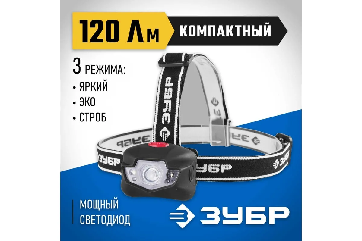 Налобный фонарь ЗУБР 3Вт, +4 LED, 3AAA, 56434 удобен для использования как в работе, так и на отдыхе. Станет идеальным помощником в темное время суток или в неосвещенных помещениях и выполнения манипуляций обеими руками. Устройство имеет фокусирующую линзу. Работает в трех режимах: ярком, экономичном и мерцающем.