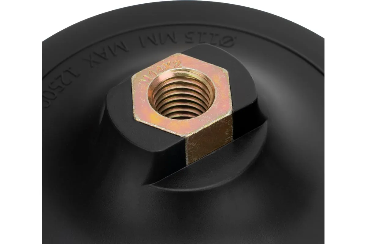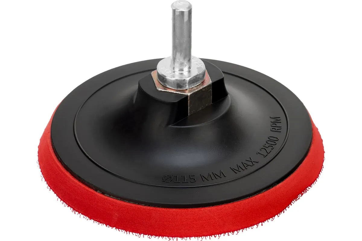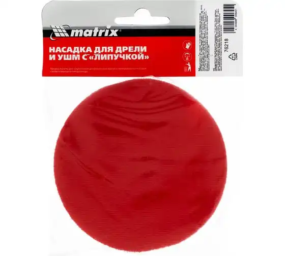 Насадка для дрели и УШМ с липучкой Matrix 76218 используется с дрелями и углошлифовальными машинами, поддерживающими оснастки диаметром 115 мм и имеющими рабочий диапазон вращения до 12500 об/мин. Предназначена для установки абразивных и полировальных кругов на ворсовой подложке. Насадка с демпферной вставкой из вспененного этиленвинилацетата (EVA) универсальна и подходит для всех видов полировальных и шлифовальных работ.