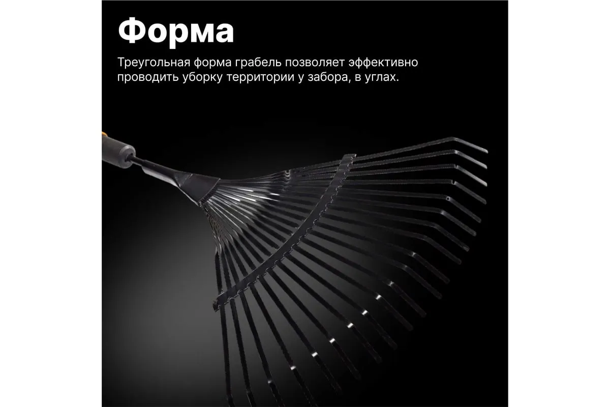 Инструмент идеально подходит для удаления сухих листьев и травы. Гибкие зубцы (22 штуки) сохраняют газон в целости.