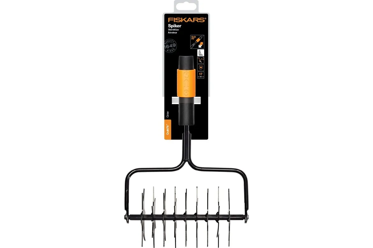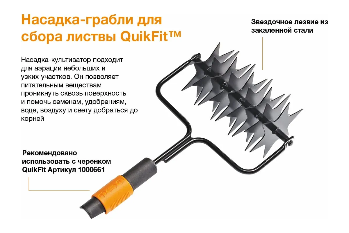 Насадка-культиватор звездочный Fiskars QuikFit 1000689 подходит для аэрации небольших и узких участков. Культиватор позволит питательным веществам проникнуть сквозь поверхность и помочь семенам, удобрениям, воде, воздуху и свету добраться до корней. Звездочное лезвие выполнено из закаленной стали, что обеспечивает надежность и долгий срок службы. Насадка предназначена для использования совместно с черенком Fiskars QuikFit 1560 мм 1000661.