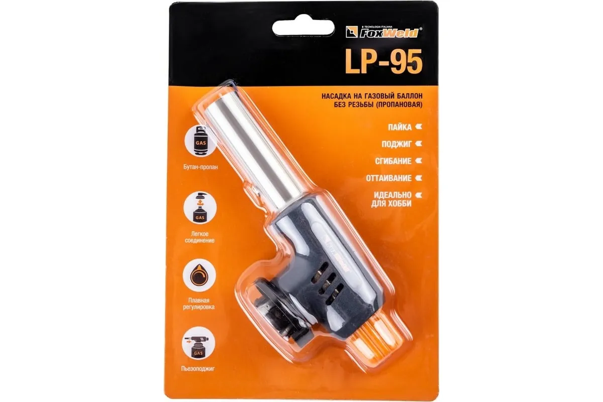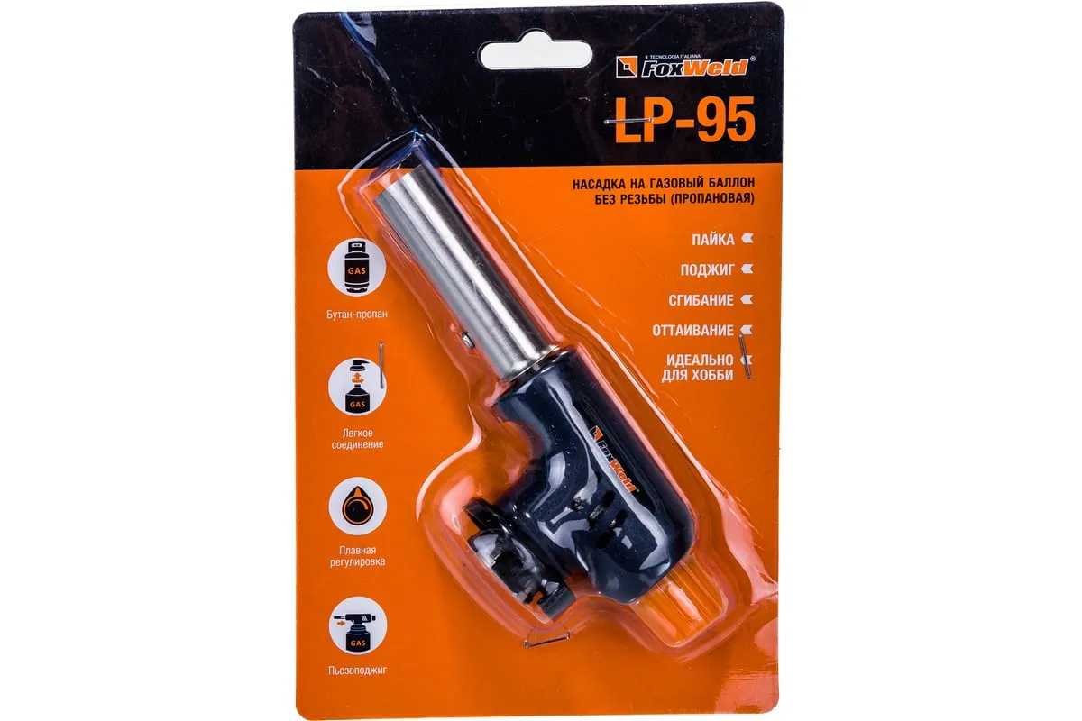 Насадка на баллон без резьбы FOXWELD LP-95 пропановая 6382 поможет осуществить самые разные операции: пайку, нагрев различных поверхностей, поджиг. Лампа LP-95 (пропановая) — устройство, работающее на газе и легко соединяющееся/разъединяющееся со сменным газовым баллоном. Модель удобна и для выполнения профессиональных задач, и для хобби.