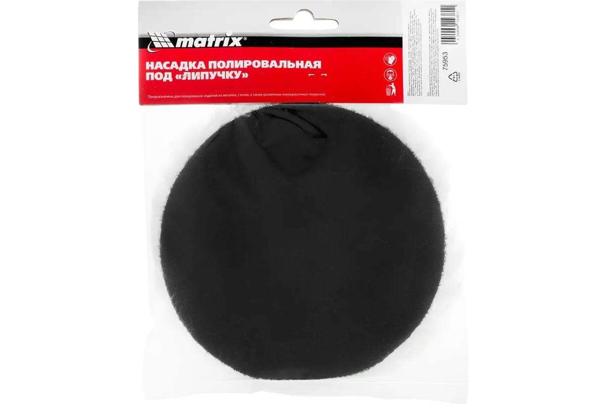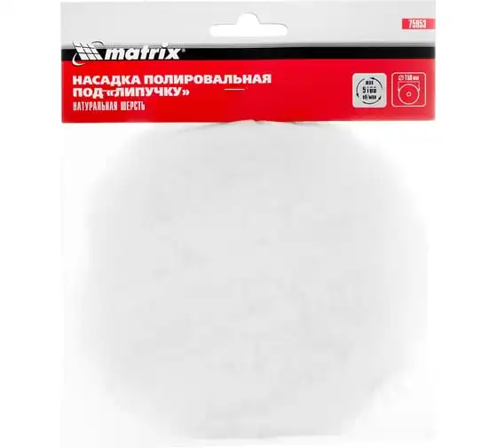 Полировальная насадка «под липучку» Matrix 75953 из натуральной шерсти фиксируется на опорной тарелке полировальной машины с посадочным диаметром 150 мм, также может устанавливаться на дрель или УШМ при использовании опорной тарелки d150мм. Ее применяют для финишной обработки окрашенных, металлических и стеклянных поверхностей. Насадка с особо мягким ворсом нивелирует мелкие царапины и придает блеск. Будет полезна при проведении кузовного ремонта.
