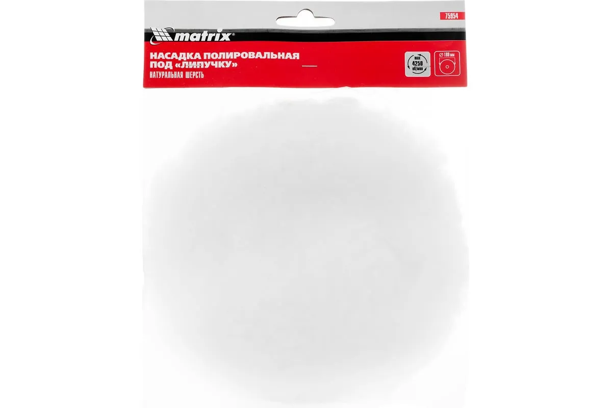 Полировальная насадка «под липучку» Matrix 75954 из натуральной шерсти фиксируется на опорной тарелке полировальной машины с посадочным диаметром 180 мм, также может устанавливаться на дрель или УШМ при использовании опорной тарелки d180мм. Ее применяют для финишной обработки окрашенных, металлических и стеклянных поверхностей. Насадка с особо мягким ворсом нивелирует мелкие царапины и придает блеск. Будет полезна при проведении кузовного ремонта.