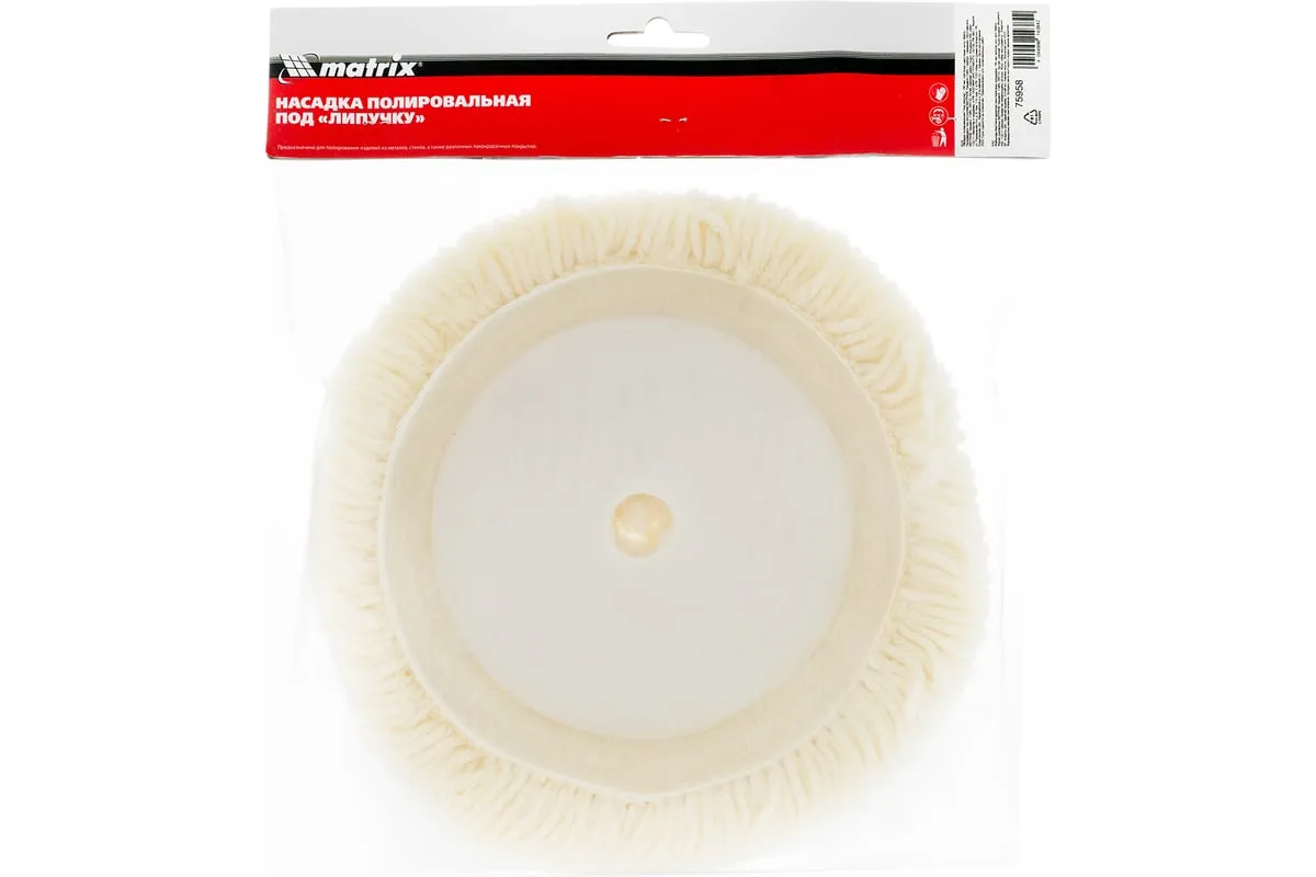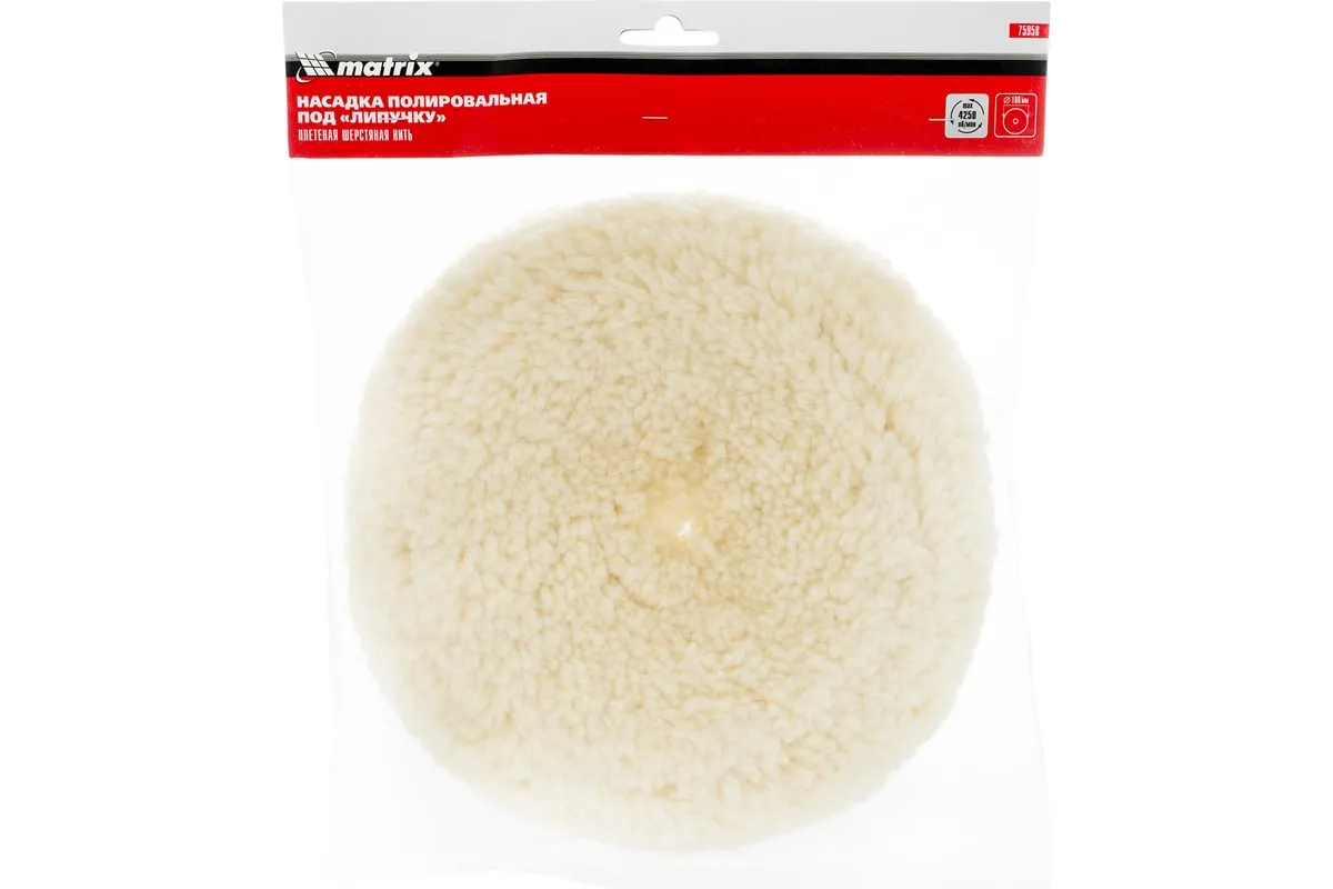 Полировальная насадка «под липучку» Matrix 75958 диаметром 180 мм, с рабочей поверхностью из плетеной шерстяной нити, применяется совместно с шлифовальными машинками, а также дрелями и УШМ с установленной опорной тарелкой «под липучку» соответствующего типоразмера. Ворс высотой 30 мм обладает хорошей полирующей способностью, эффективно устраняет микротрещины и придает блеск. Насадку используют для полировки металлических и стеклянных поверхностей, а также лакокрасочных покрытий, преимущественно при проведении кузовных работ.