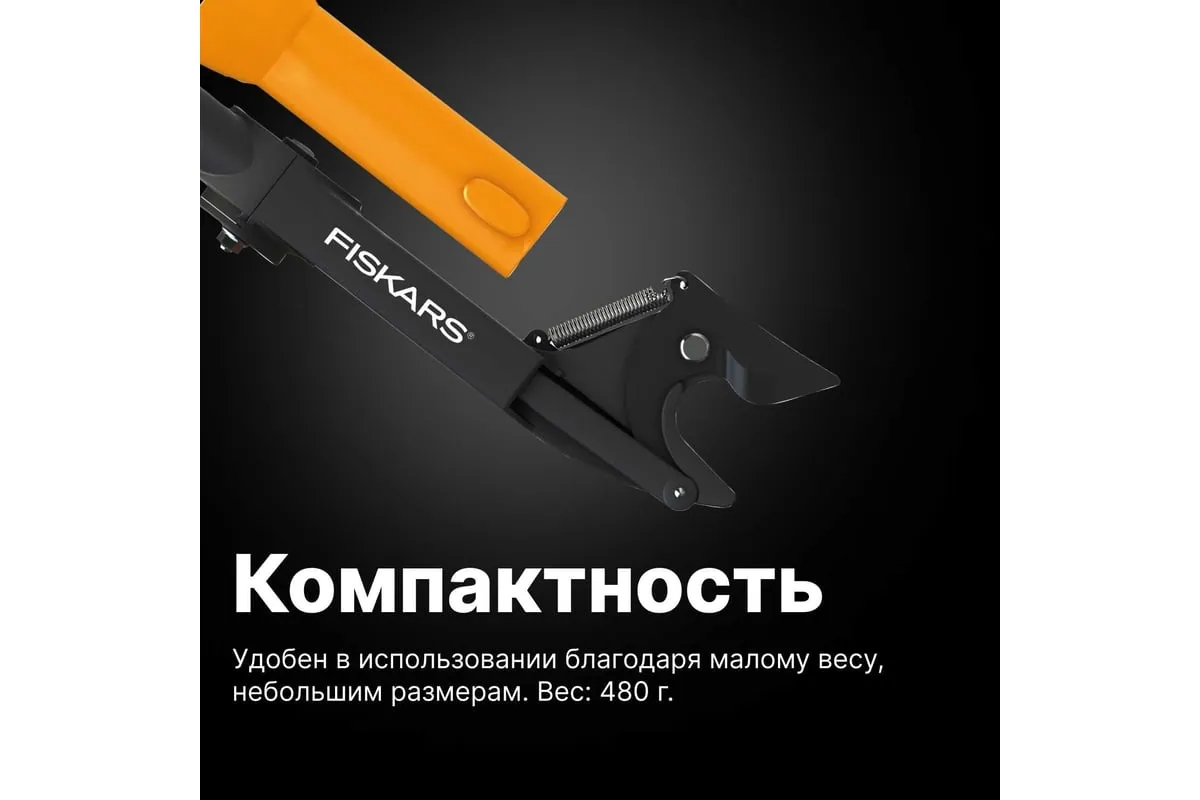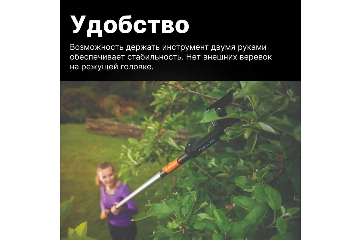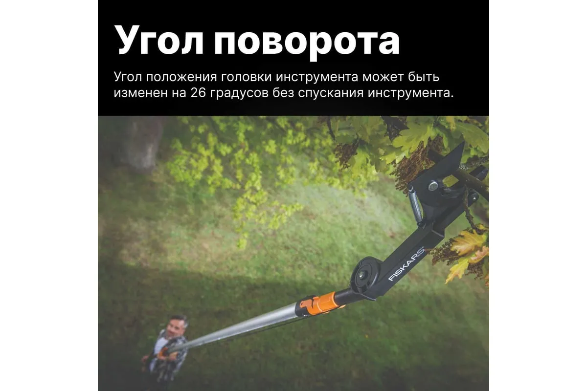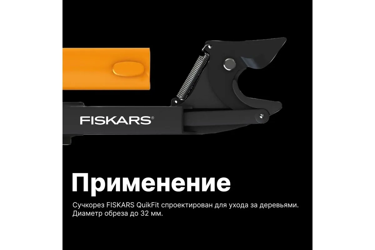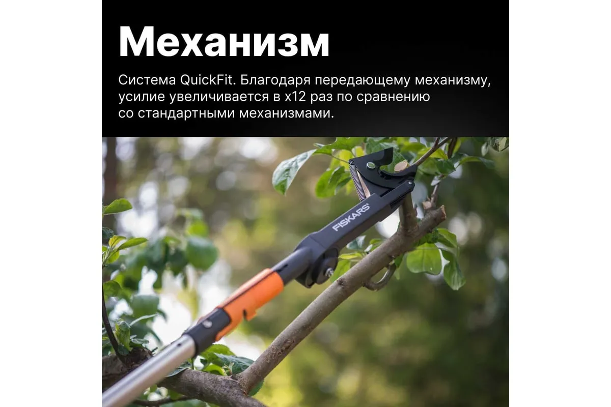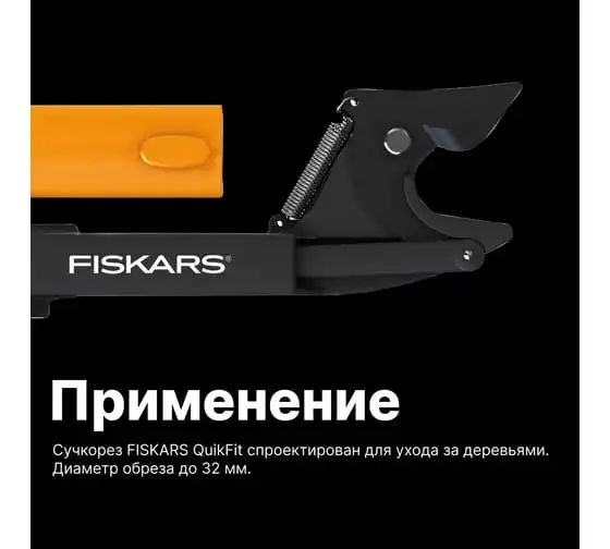 Насадка-сучкорез Fiskars QuikFit 1001410 используется для обрезания веток, расположенных на высоте. Инструмент прост в применении.