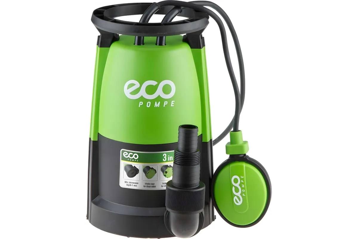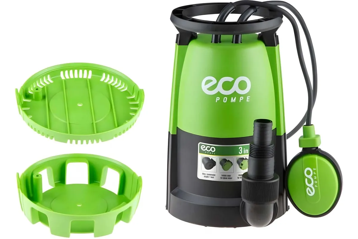 Насос дренажный 3-в-1 ECO DP-916i (EC4210-2) - многофункциональный погружной насос с возможностью установки сменных насадок, позволяющих использовать его в различных ситуациях. Максимальная температура перекачиваемой воды +35 °С.