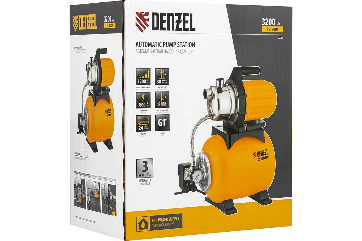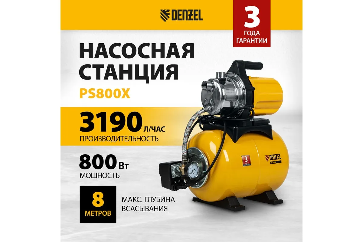 Насосная станция Denzel PS800X 97210 - агрегат для домового водоснабжения в загородных домах.