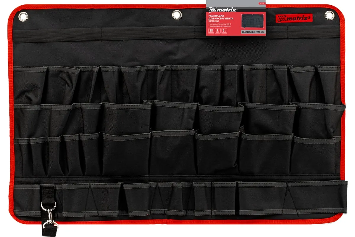 Разместить раскладку очень просто — она вешается на стену на установленные в материале люверсы. Будет полезна дома, на даче и в гараже.