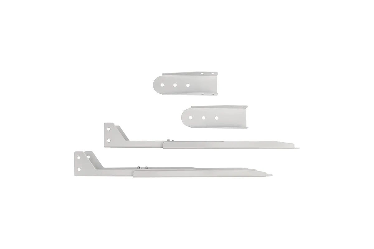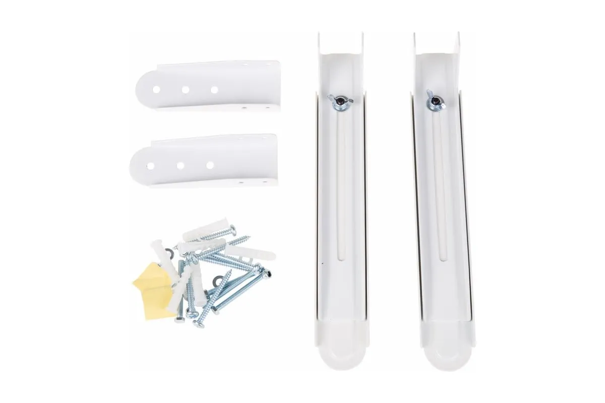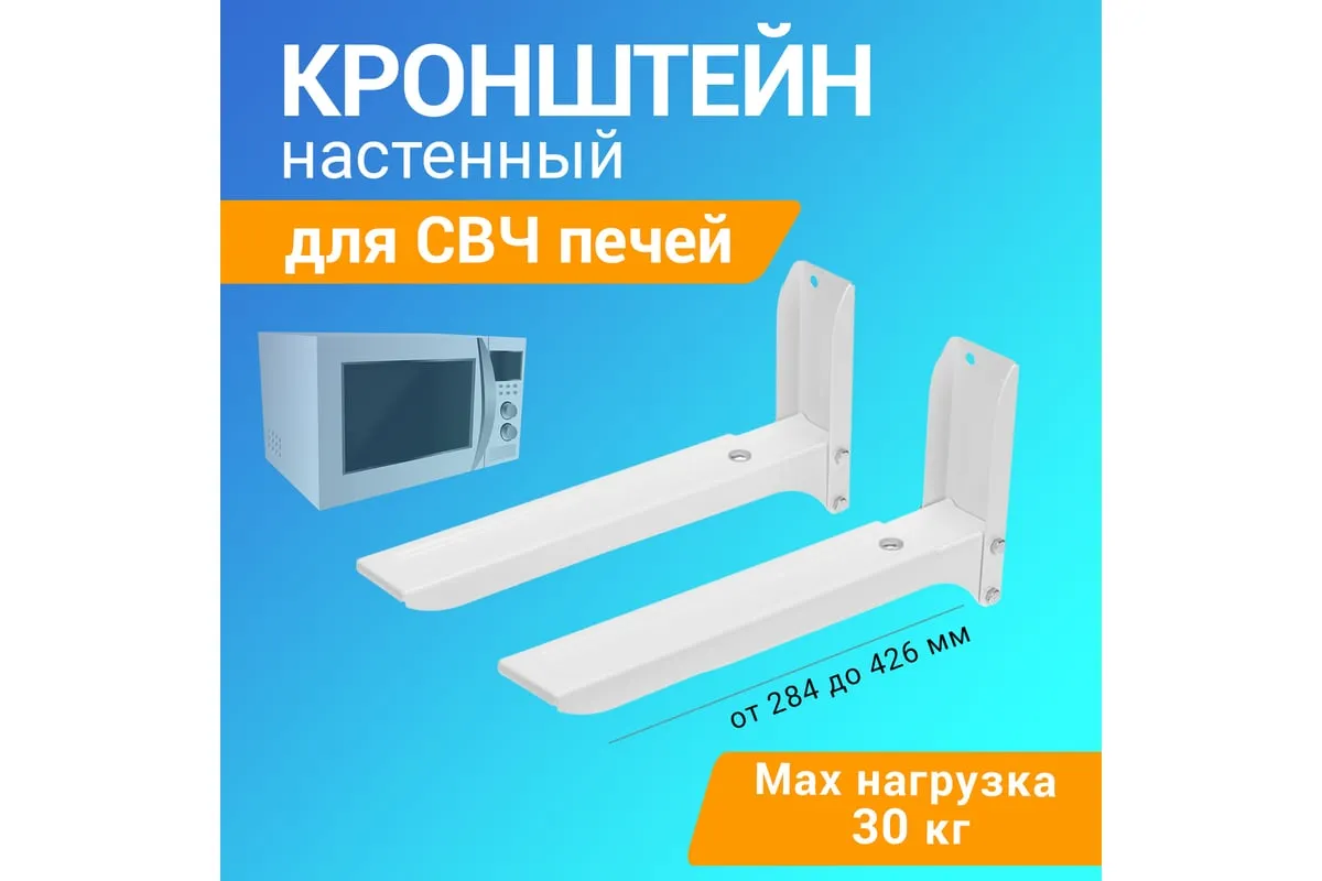 Вылет от стены регулируется от 284 до 426 мм, а расстояние между опорами определяется шириной устанавливаемого оборудования. Это позволяет использовать данные крепления не только для микроволновых печей, но и для размещения различных устройств, например, принтеров, факсов, A/V систем и других предметов, вес и габариты которых превышают предельно допустимые для кронштейнов со стеклянными полками.