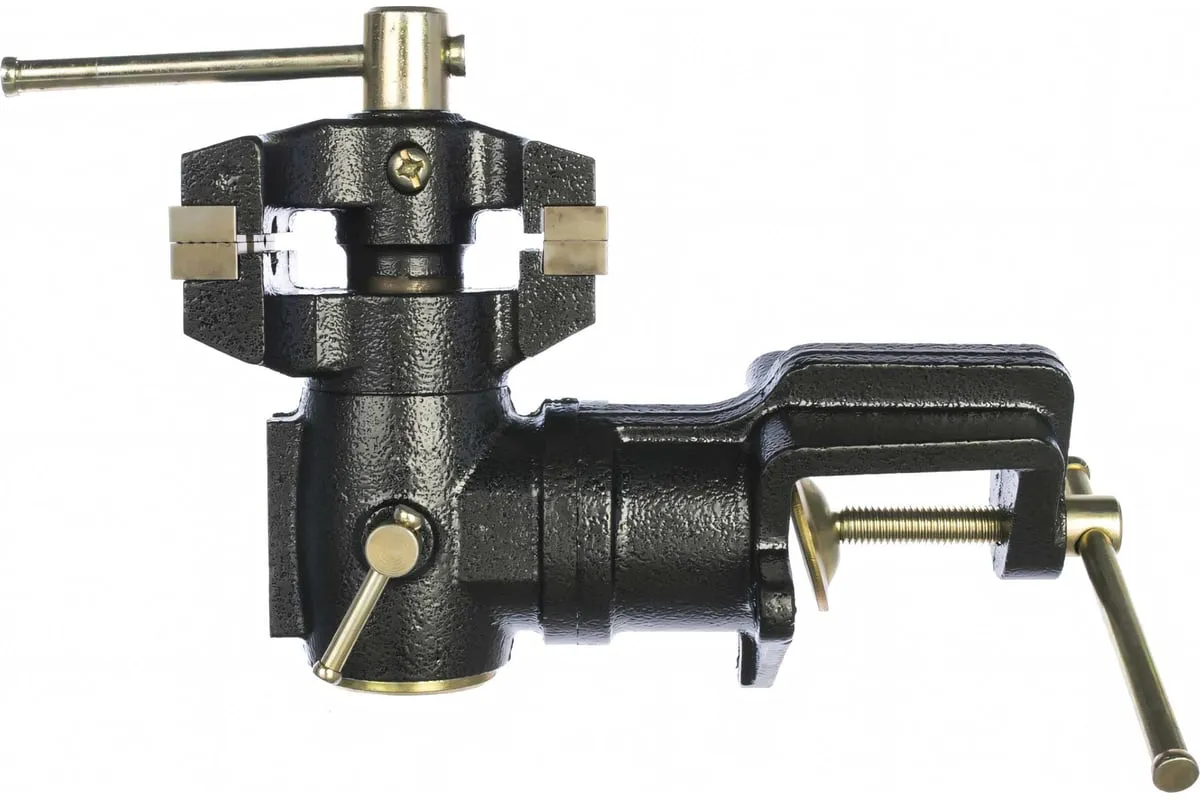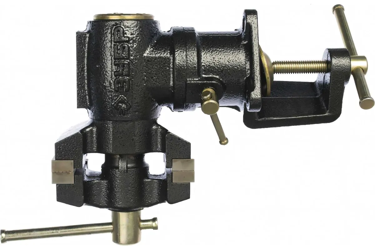 Настольные тиски ЗУБР МАСТЕР 32480 крепятся к столу посредством регулировочного винта. Оснащены поворотным основанием и поворотной планкой, которые обеспечивают свободу выбора положения зажимаемой детали - 360опо вертикали и 360опо горизонтали.