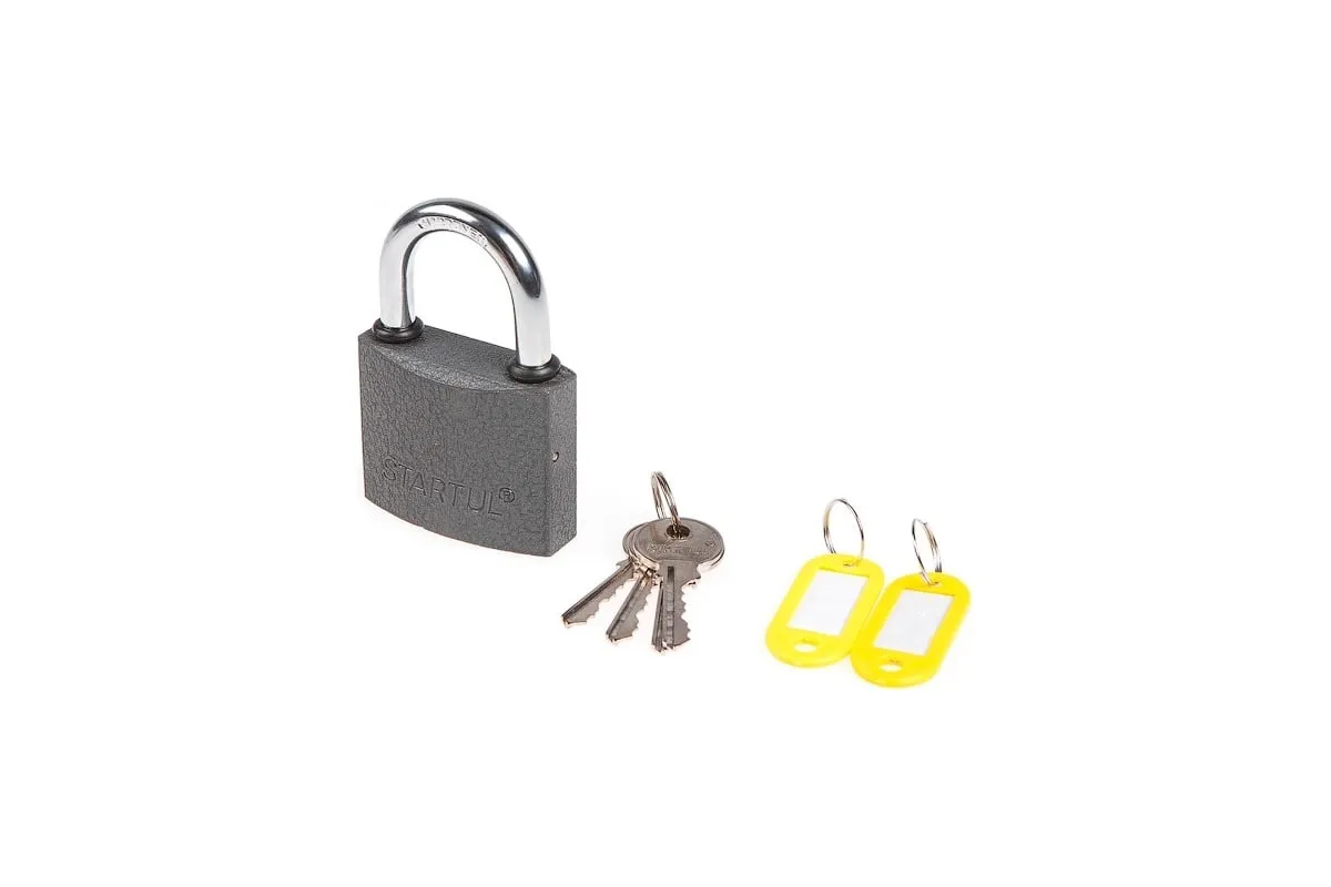 Навесной замок STARTUL 38 мм Standart ST9084-38 отличается небольшими габаритами. Дужка из закаленной высококачественной стали, высокопрочный чугунный корпус и хромированное покрытие обеспечивают надежность и долгий срок службы. Устойчив к любым погодным условиям.