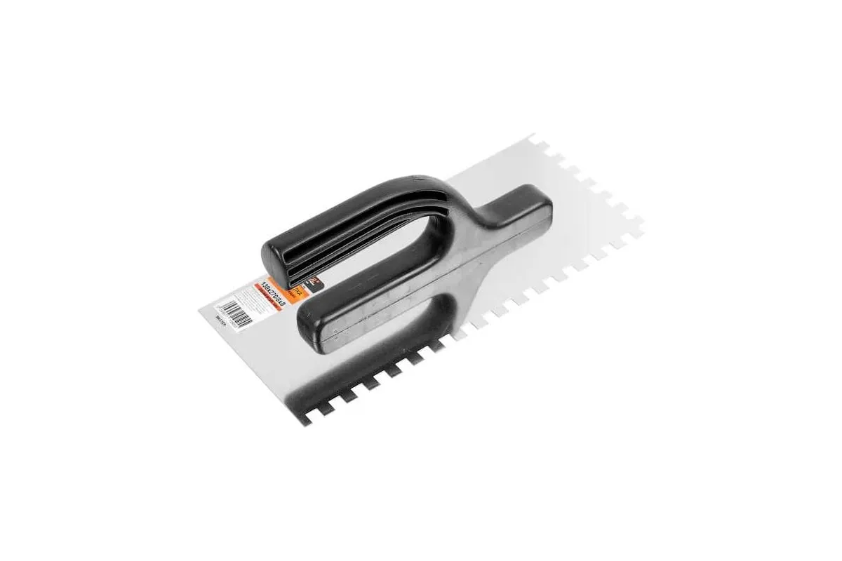 Нержавеющая гладилка STARTUL 130x270 мм зуб 10x10 мм Master ST1050-21 служит для нанесения плиточного клея и штукатурных составов. Прочное полотно надежно соединено с рукоятью. Можно работать с большим усилием. Материал полотна успешно противостоит деформациям, а также химическому воздействию. Имеет длительный срок службы.