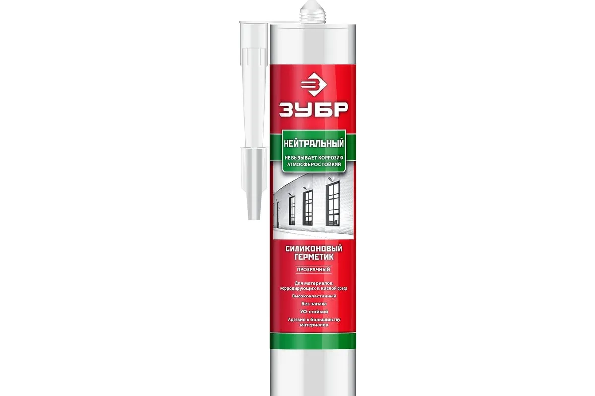 Нейтральный силиконовый герметик ЗУБР Эксперт 280 мл прозрачный 41237-2 используется как для наружных, так и внутренних работ. Его основной является силикон. Он обладает хорошей адгезией к большинству строительных материалов, например, стеклу, керамике, металлу, пластику, ПВХ, древесине, резине, а также устойчив к длительному воздействию воды. Применяют при строительстве и в быту для заполнения и герметизации швов, щелей, стыков. Непригоден для окрашивания.