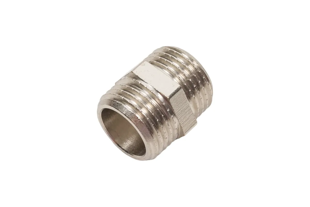 Фитинги выполнены из латуни марок ЛС58-2 и ЛС59-2 по ГОСТ 15527-2004. Никелевое покрытие создает защитный барьер, который предотвращает контакт металла с агрессивными средами, такими как вода, воздух, химические вещества.