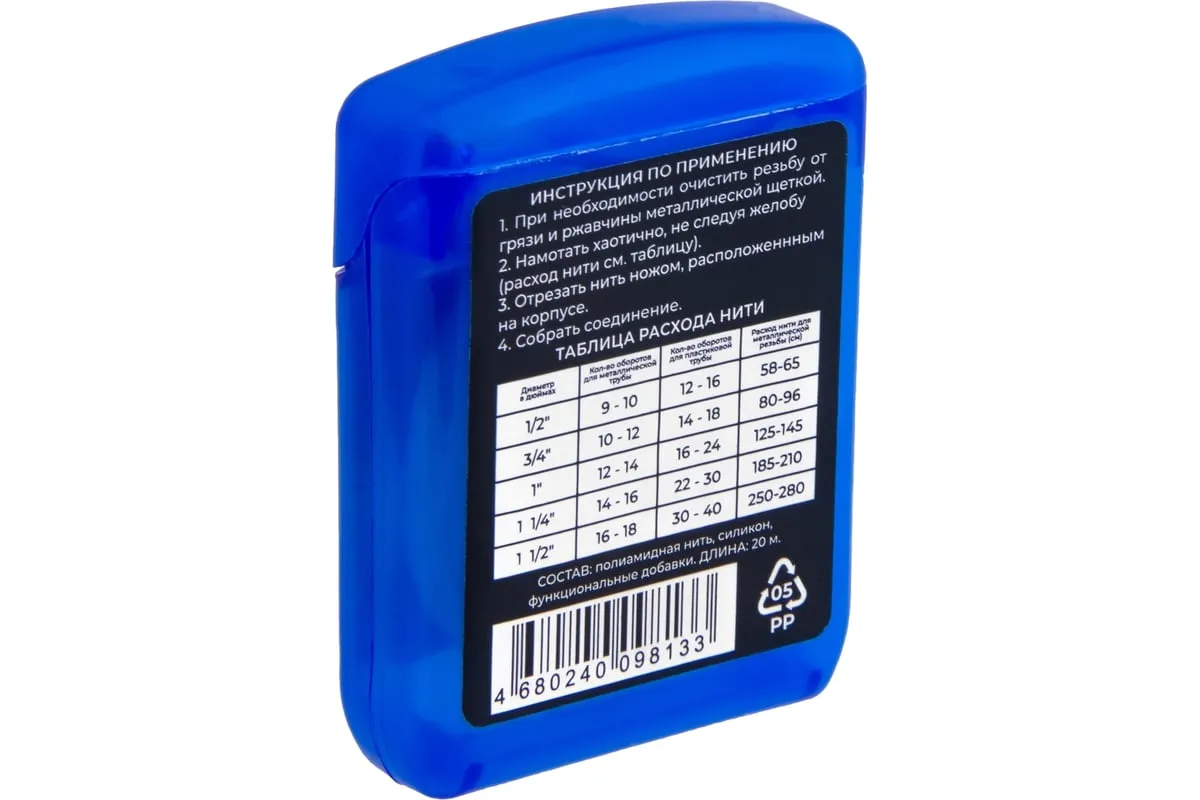 Нить сантехническая уплотнительная для резьбовых соединений 20м MPF ИС.131453 предназначена для герметизации резьбовых соединений металлических и пластмассовых труб. Применяется в системах горячего и холодного водоснабжения с питьевой и технической водой, сжатого воздуха, отопления. Нить устойчива к вибрациям, перепадам температур. Обеспечивает моментальную герметизацию. Нить гигиенична, не разлагается и предотвращает развитие коррозии. В течение 72 часов после монтажа допускается регулировка соединения (ослабление, затягивание) без замены нити.