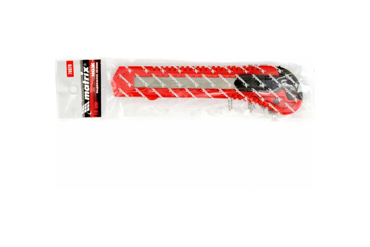 Нож 18 мм MATRIX 78929 используется для реза бумаги и прочих материалов. Имеет специальную кнопку, работающую на выдвижение либо фиксацию. Через хвостовую часть ножа можно заменить лезвие. Ширина лезвия составляет 18 мм.