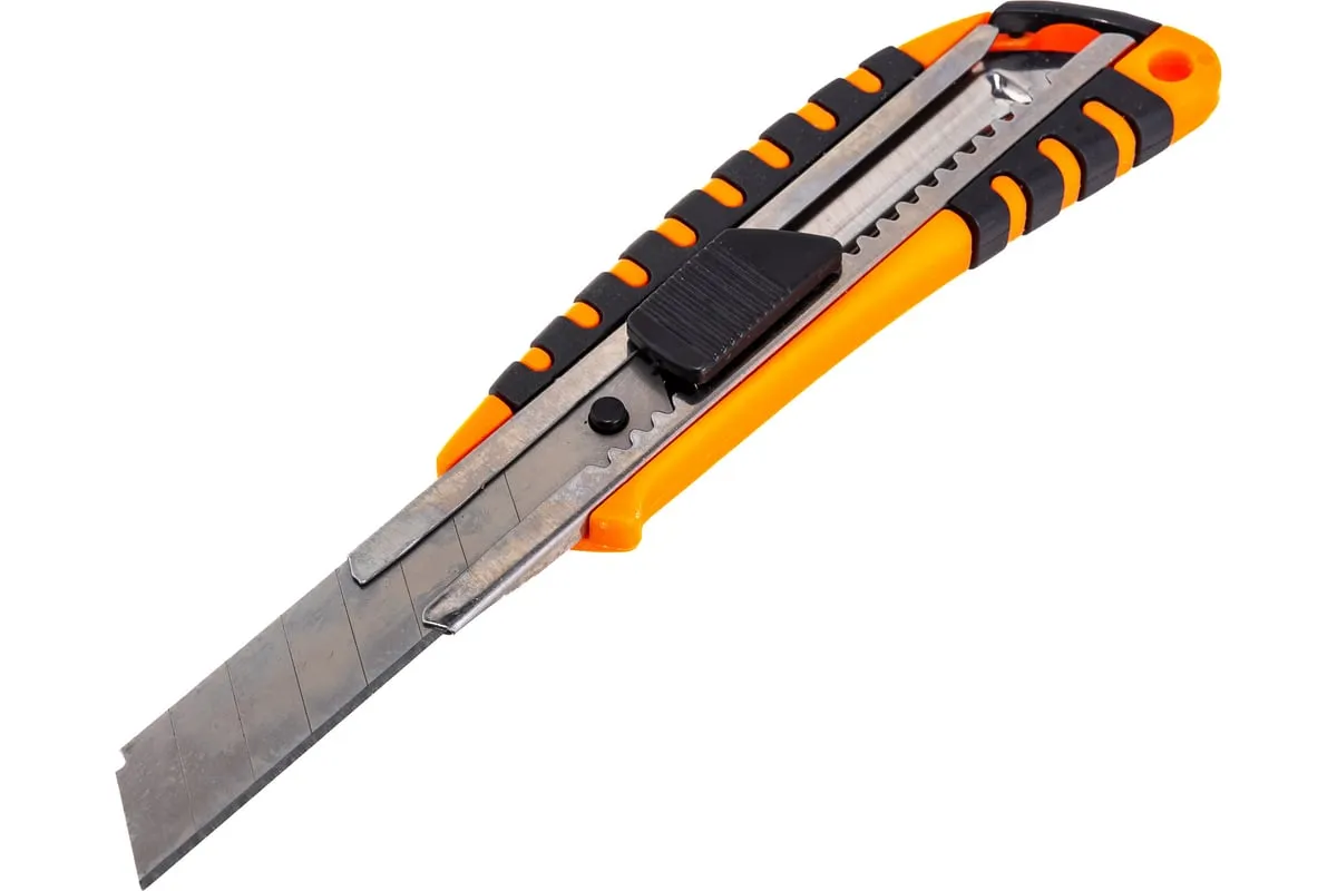 Нож Sparta 78939 с выдвижным лезвием шириной 18 мм выполнен в пластиковом двухкомпонентном корпусе с металлической направляющей. Пригодится мастерам при проведении ремонтных работ, будет полезен в быту и в частных мастерских. Острое лезвие с легкостью режет бумагу, картон, обои, линолеум, кожу и другие материалы. Лезвие не требует заточки и выдвигается на необходимую длину.