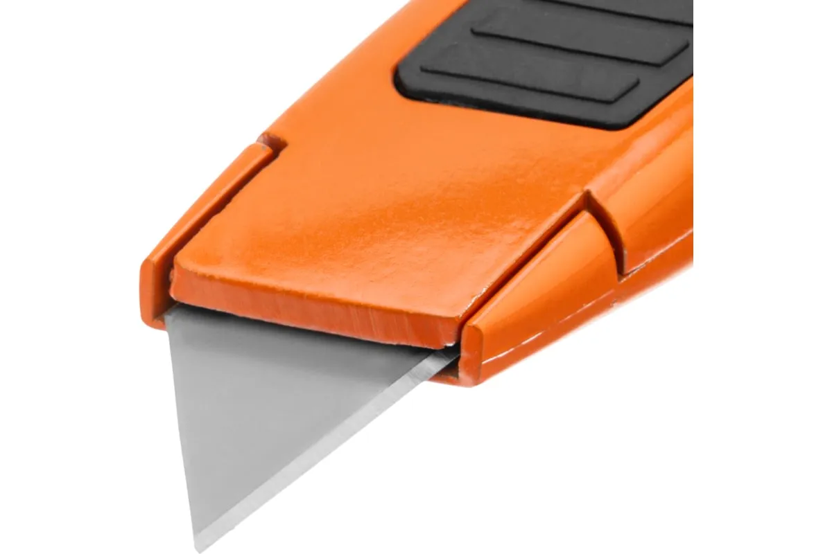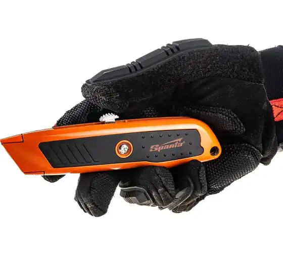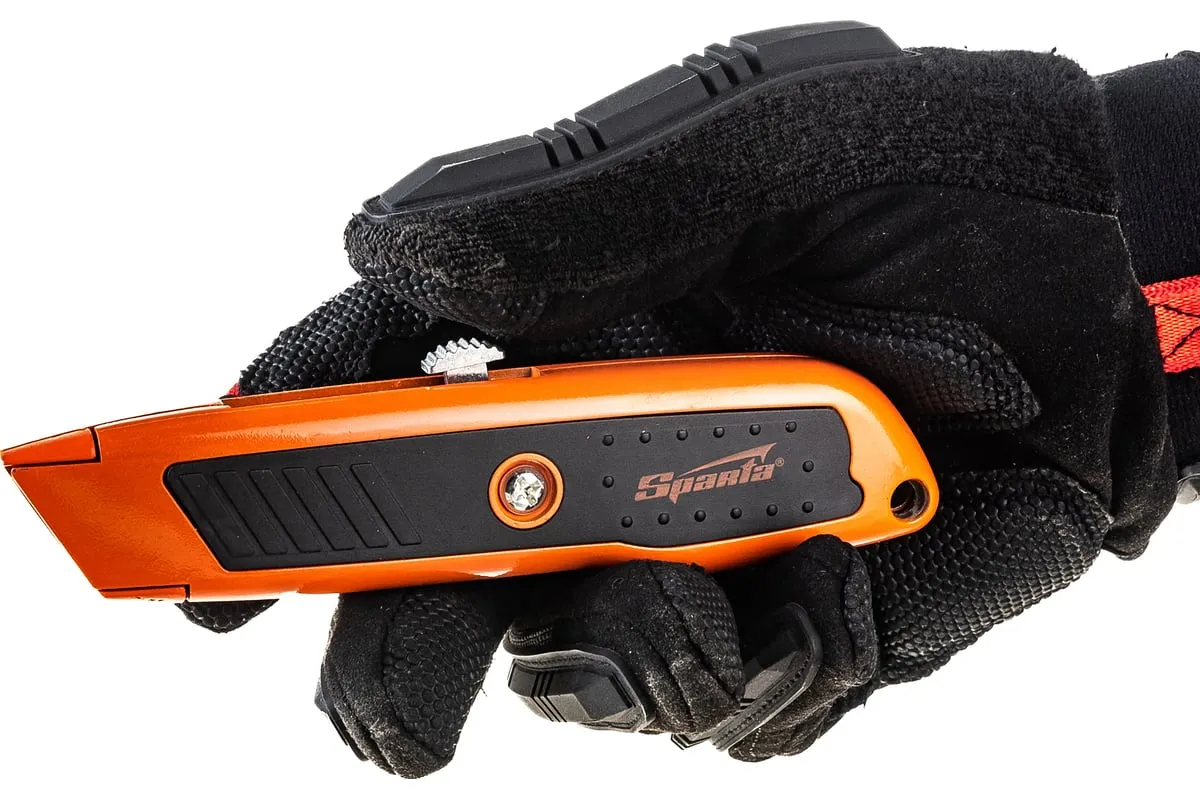 Нож Sparta 78978 с выдвижным трапециевидным лезвием, выполненные в двухкомпонентном корпусе, будет полезен как в быту, так и на строительной площадке при выполнении облицовочных и ремонтных работ. С его помощью можно резать картон, кожу, обои, линолеум, срезать монтажную пену. С выдвижным лезвием удобно работать — достаточно настроить его длину с помощью бегунка.