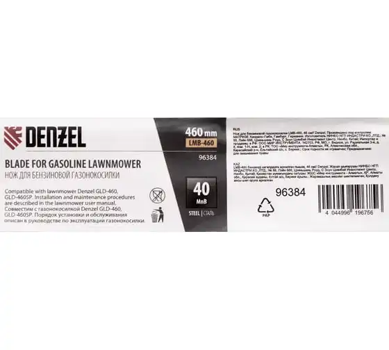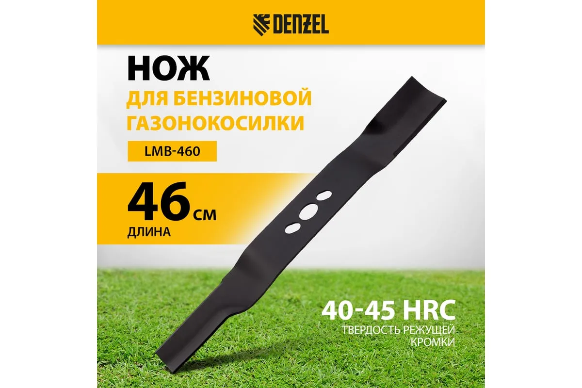 Нож Denzel 96384 длиной 46 см — сменный режущий элемент для бензиновой газонокосилки LMB-460. Используется для кошения травы на дачных газонах, кортах, а также для ухода за садовыми и парковыми территориями. Эффективно срезает траву, особенно удобен для работы на небольших участках, например, ограниченных строениями или деревьями. Нож для газонокосилки пригодится владельцам дачных участков и работникам коммунальных служб.