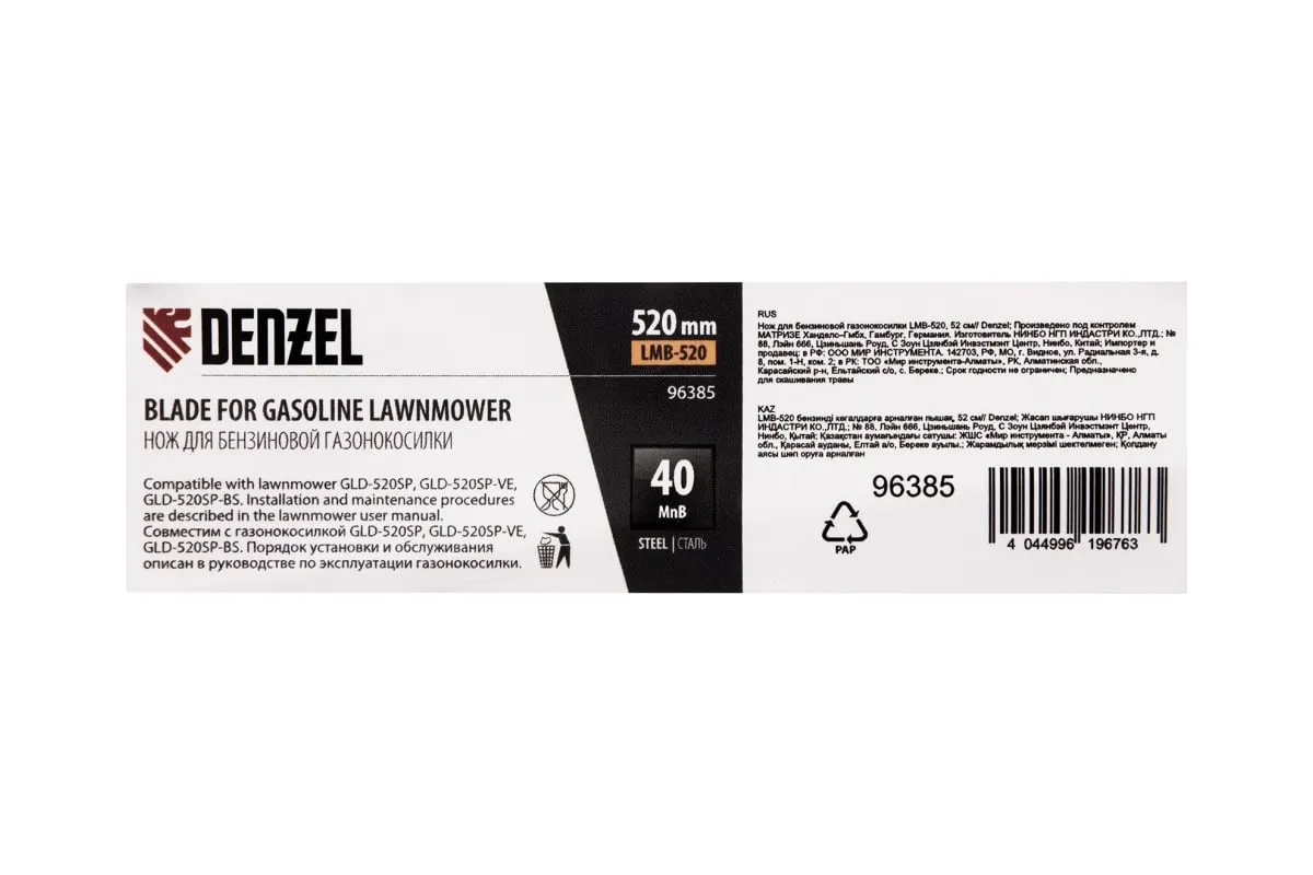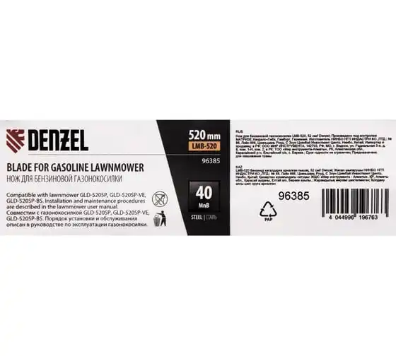 Нож Denzel 96385 длиной 52 см — сменный режущий элемент для бензиновой газонокосилки LMB-520. Используется для кошения травы на дачных газонах, кортах, а также для ухода за садовыми и парковыми территориями. Эффективно срезает траву, пригодится владельцам дачных участков и работникам коммунальных служб.