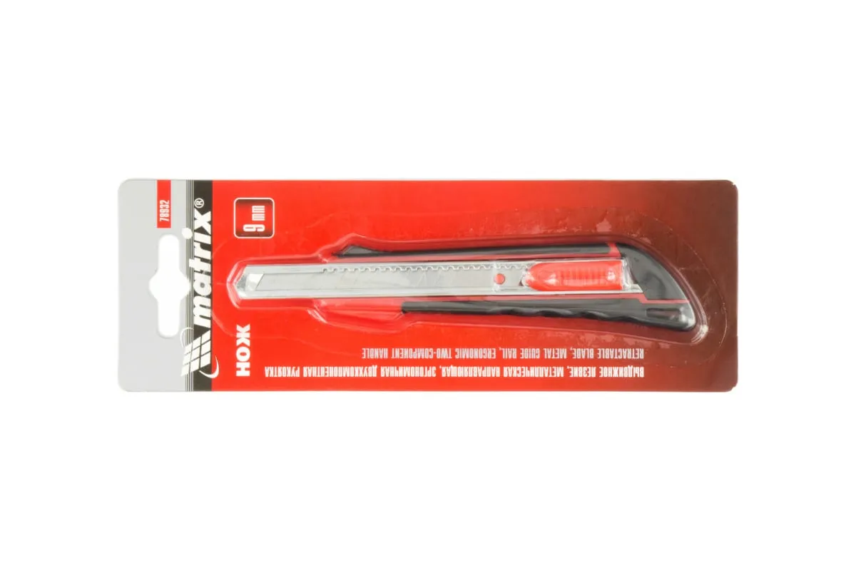 Нож Matrix 78932 с выдвижным лезвием шириной 9 мм, металлической направляющей и эргономичной двухкомпонентной рукояткой пригодится при выполнении ремонтных и строительных работ в мастерской и в быту. Он легко режет бумагу, картон, кожу, обои и другие материалы. Выдвижная конструкция позволяет с удобством эксплуатировать и безопасно перевозить нож.