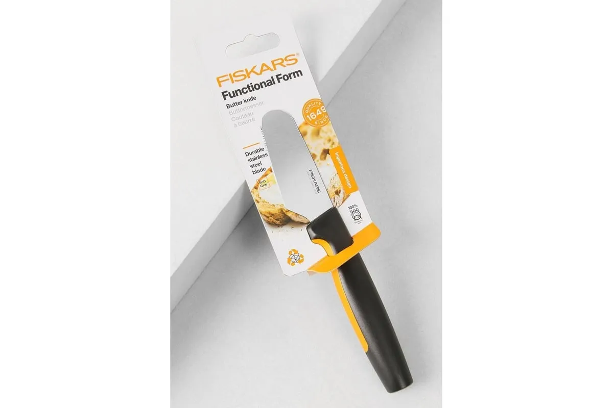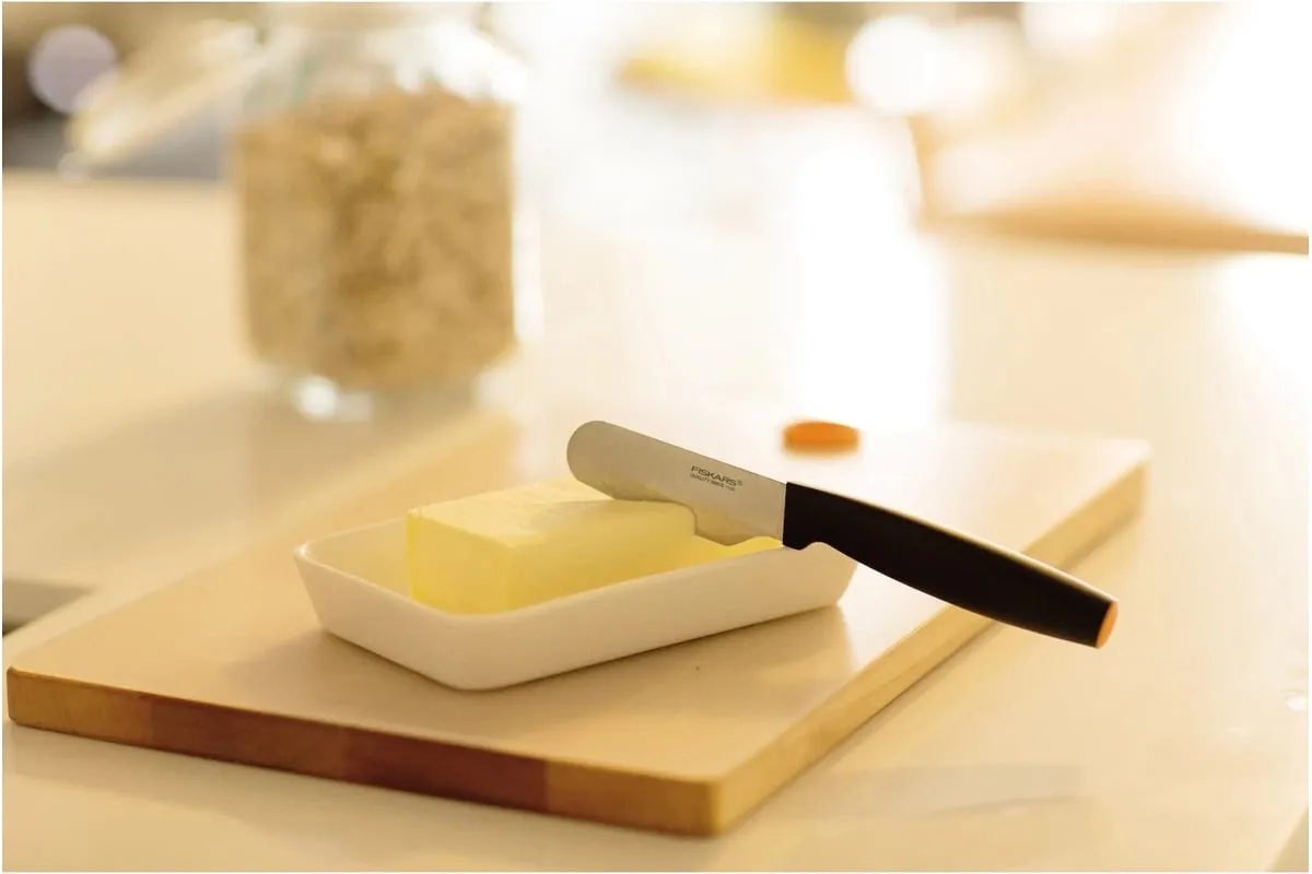 Для тех, кто ценит продуманные, но в то же время простые в уходе кухонные инструменты, нож для масла Fiskars Functional Form™ станет универсальным, повседневным помощником. Прочное лезвие из японской нержавеющей стали отлично подходит для намазывания масла и мягких сыров. Эргономичная ручка ножа имеет нескользящее покрытие SoftGrip ™, а упор для пальцев обеспечит безопасность во время работы. Как и все ножи Functional Form ™, этот нож можно мыть в посудомоечной машине, а его тонкий профиль упрощает хранение.