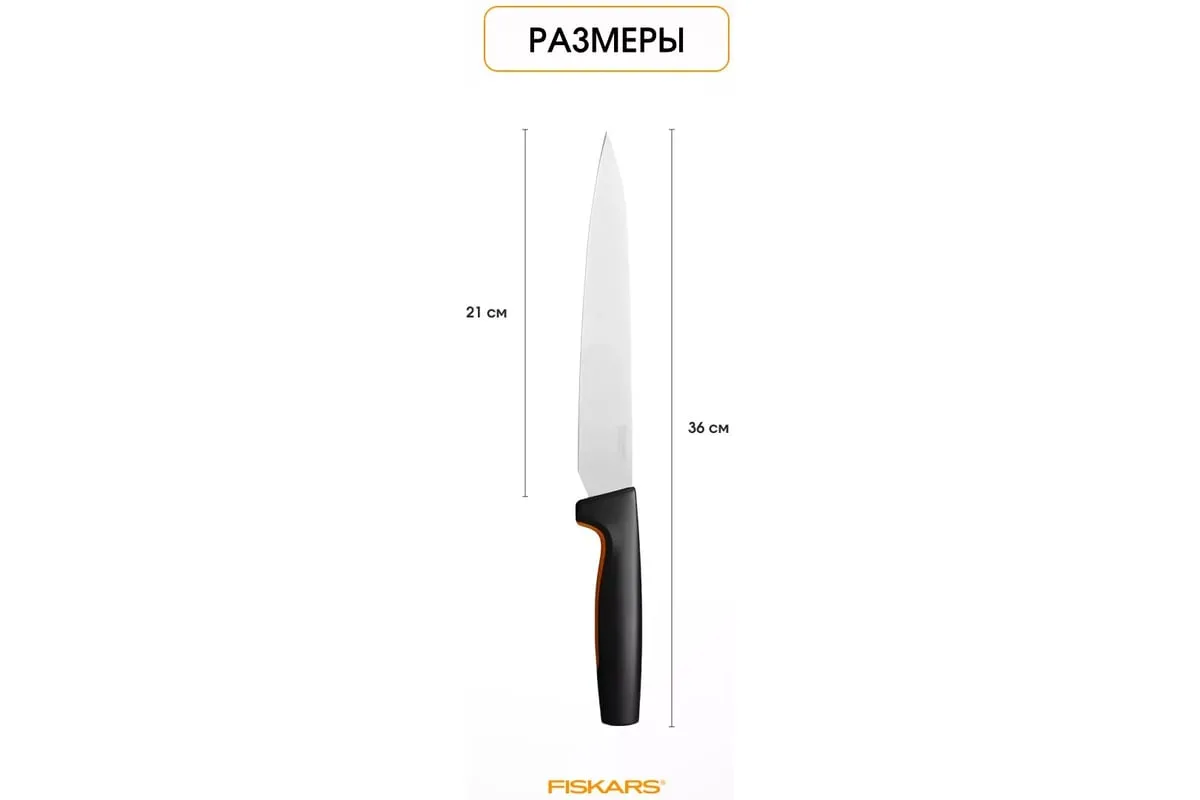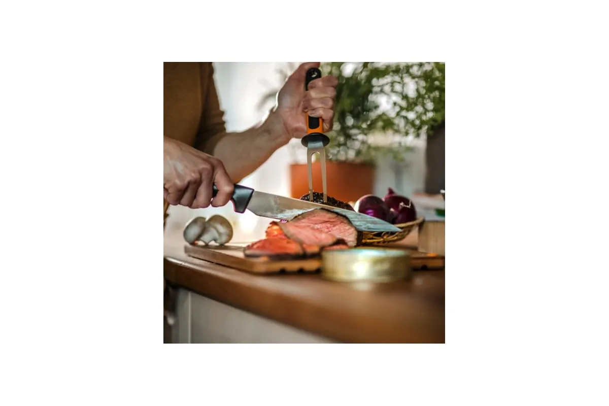 Для поваров и тех, кто ценит элегантный дизайн и простые в уходе кухонные инструменты, нож для мяса Fiskars® Functional Form™ станет незаменимым повседневным аксессуаром.