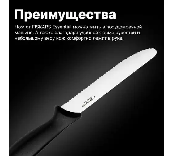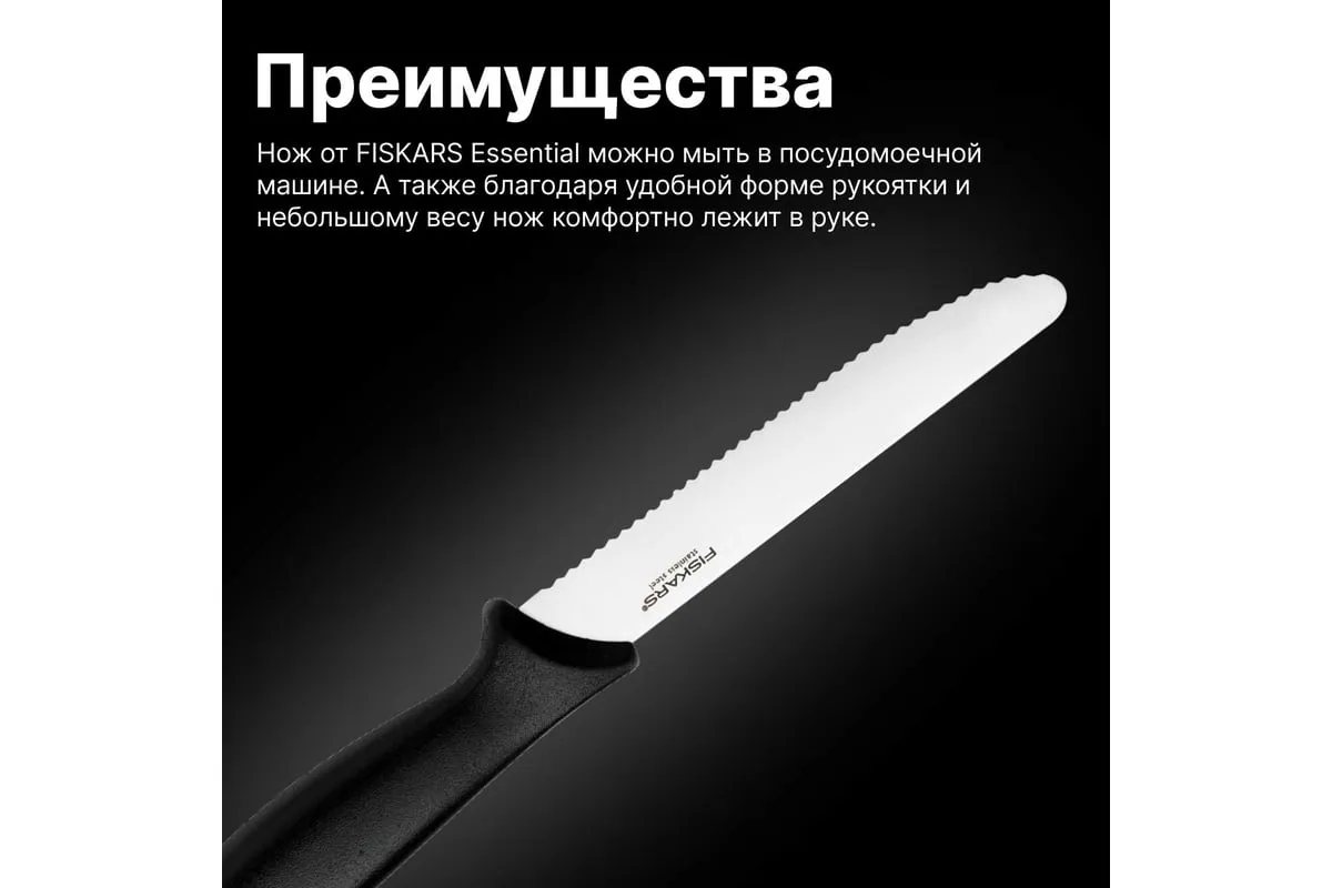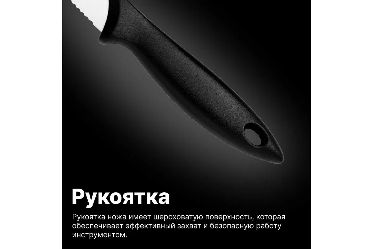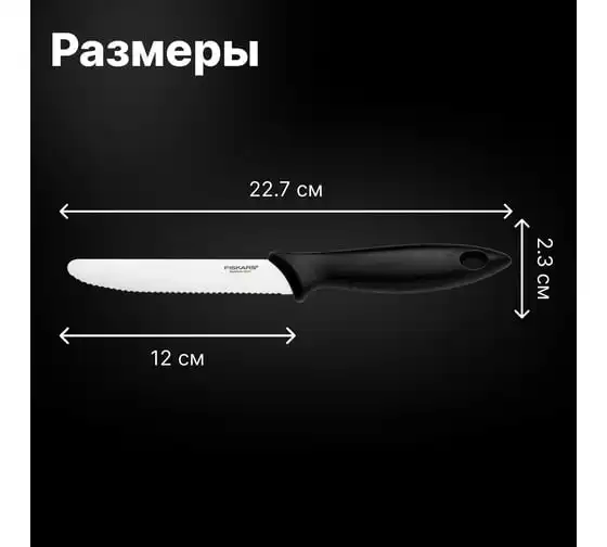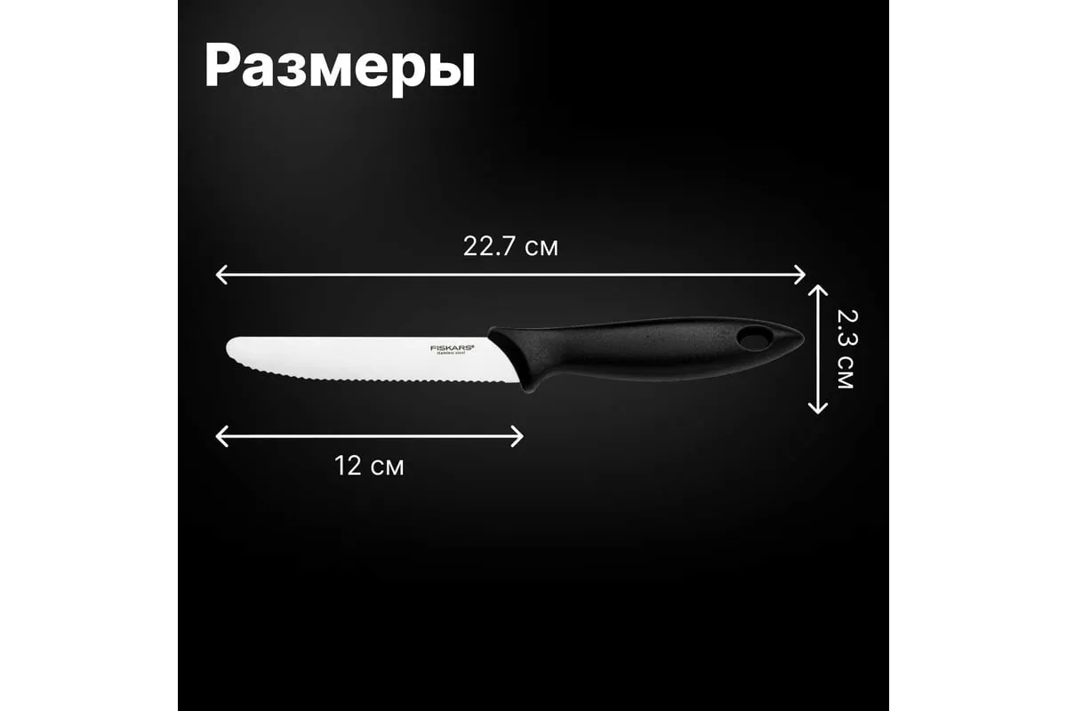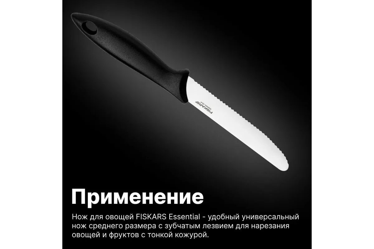 Удобный универсальный нож среднего размера с зубчатым лезвием для нарезания овощей и фруктов с тонкой кожурой.
