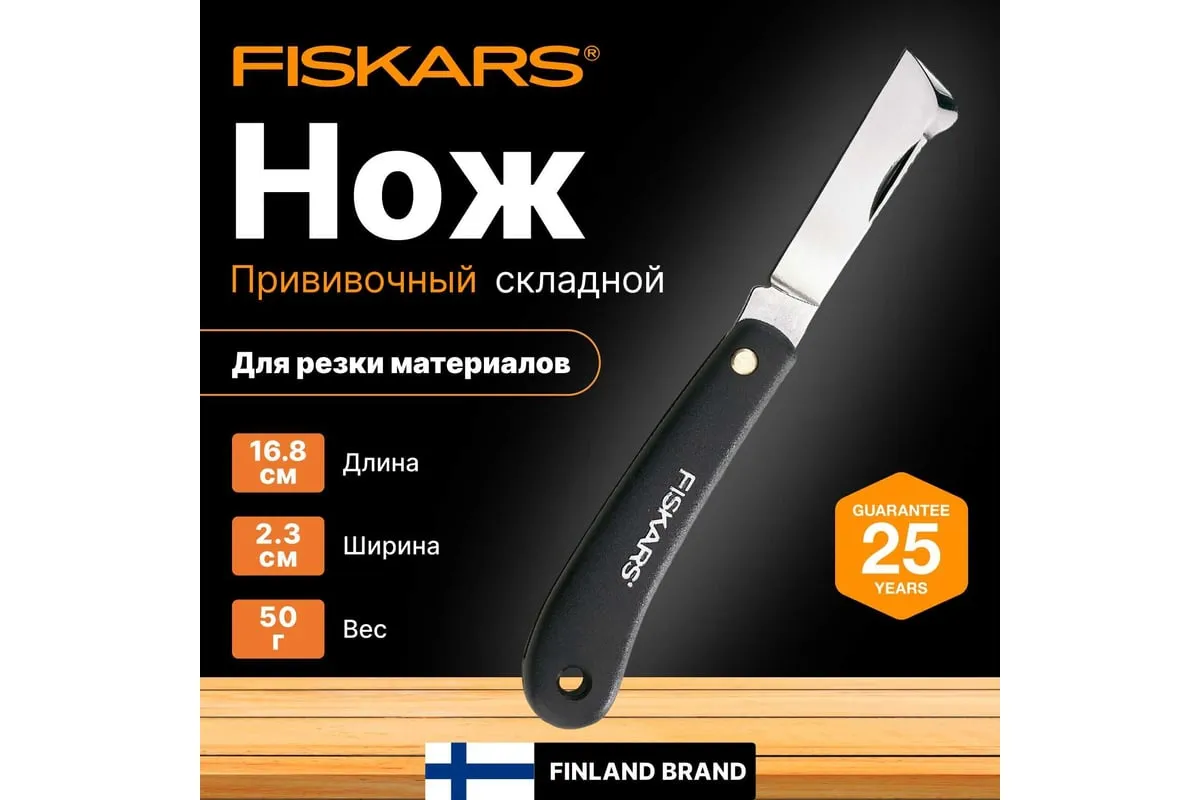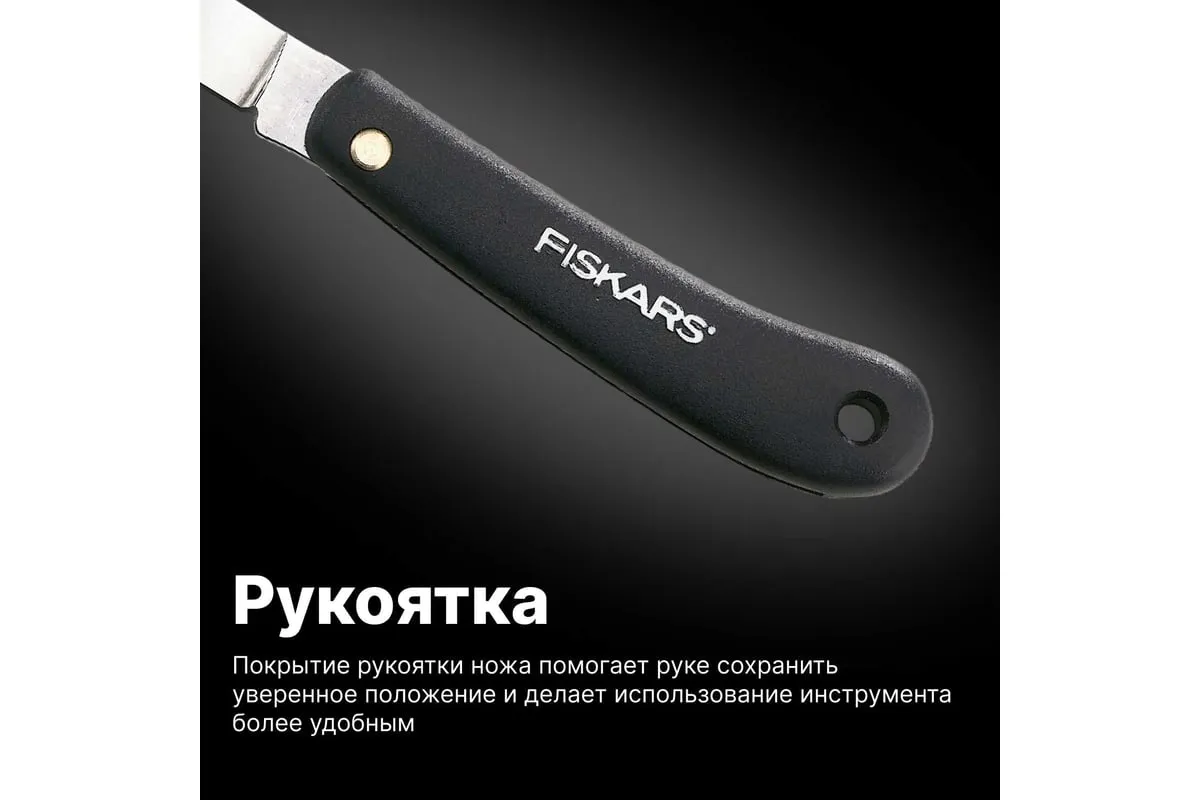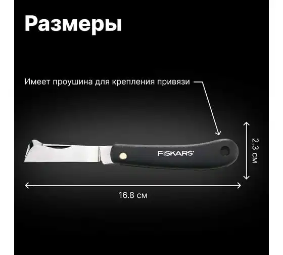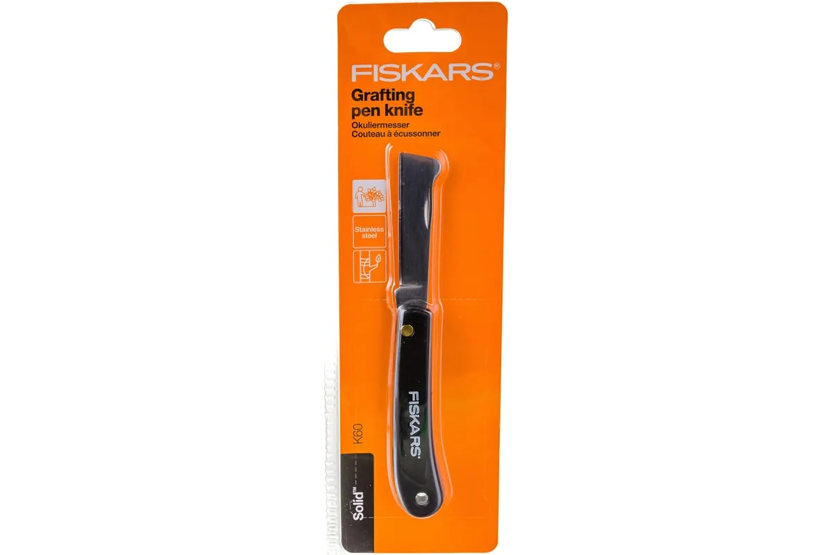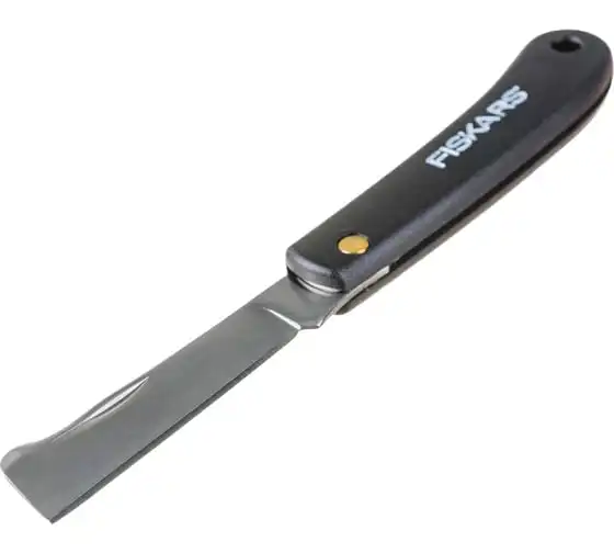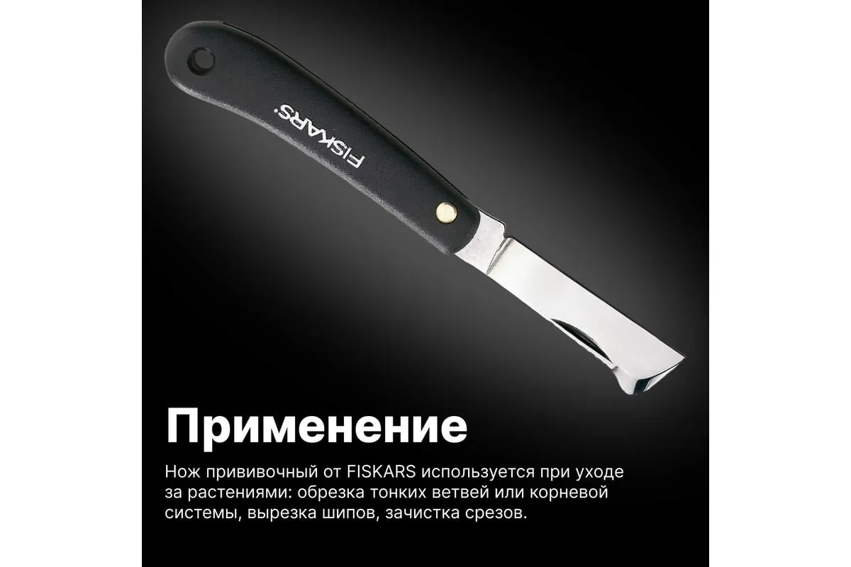 Нож для прививок Fiskars 1001625 (125900) применяется для подрезания и подравнивания кустарников и растений. Лезвие ножа изготовлено из высокоуглеродистой стали, что обеспечивает защиту от коррозии. Рукоятка выполнена из переработанной пластмассы и имеет удобную изогнутую форму для комфортной работы с инструментом. На конце рукоятки расположено отверстие для хранения инструмента в подвешенном состоянии.