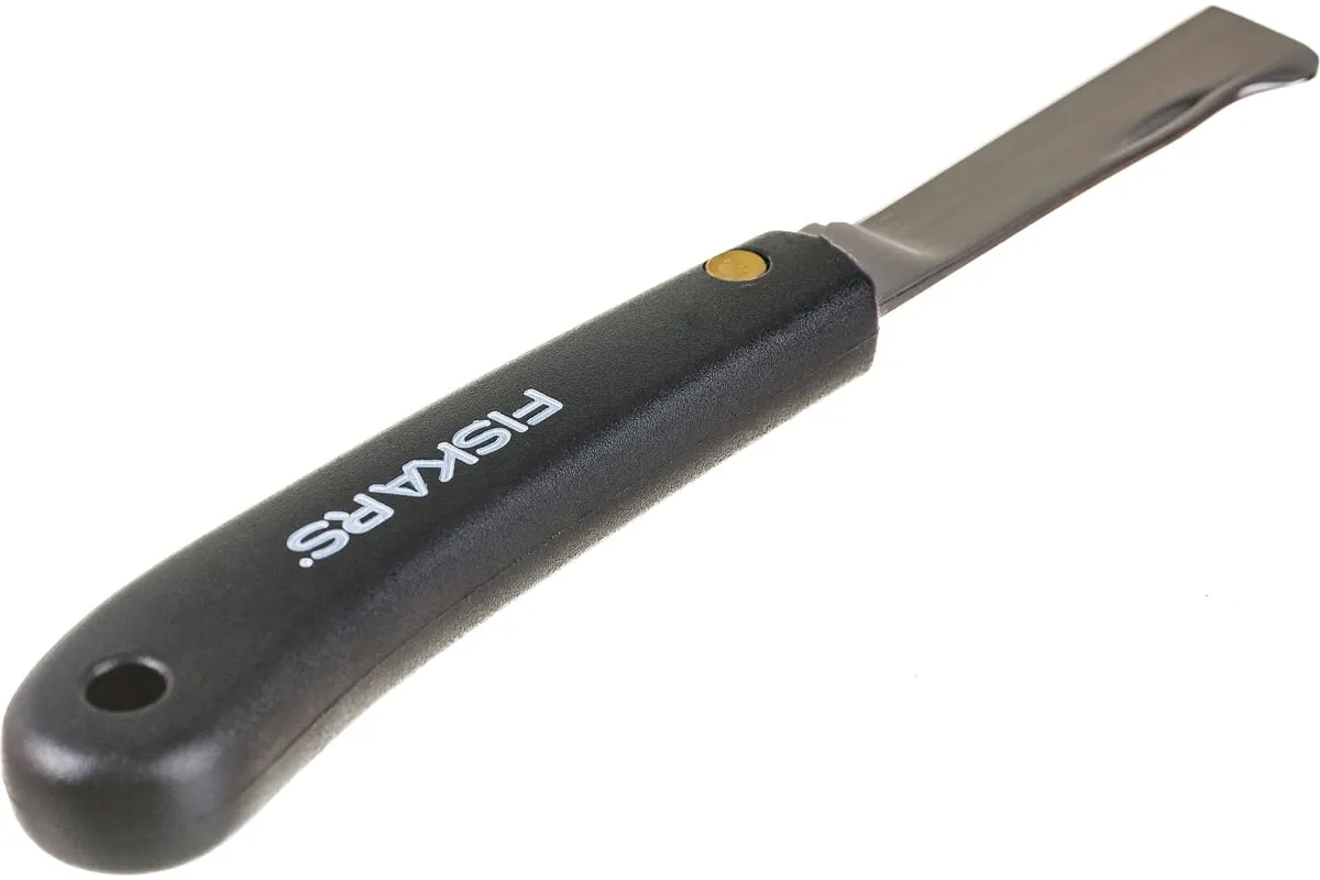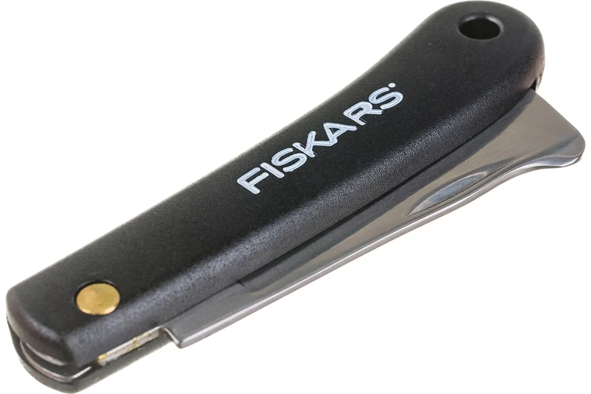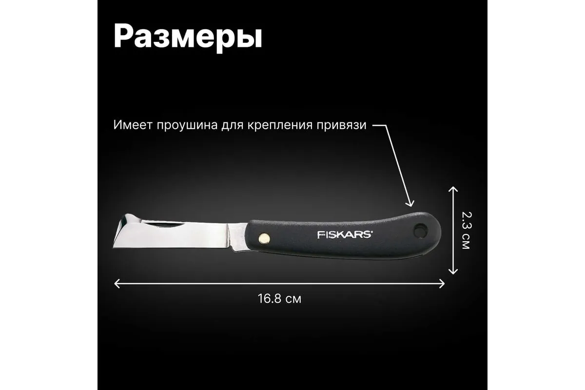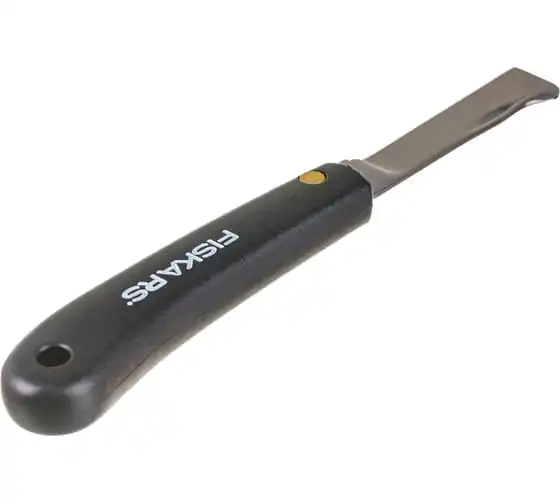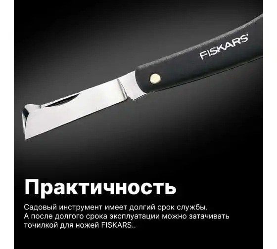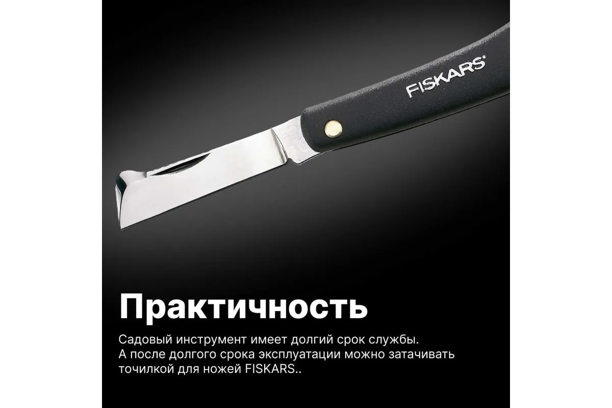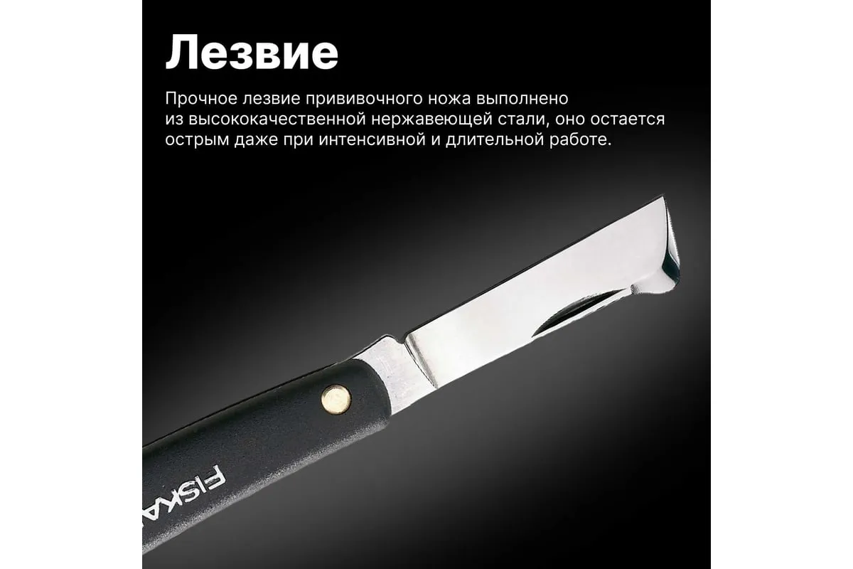 Нож для прививок Fiskars 1001625 (125900) применяется для подрезания и подравнивания кустарников и растений. Лезвие ножа изготовлено из высокоуглеродистой стали, что обеспечивает защиту от коррозии. Рукоятка выполнена из переработанной пластмассы и имеет удобную изогнутую форму для комфортной работы с инструментом. На конце рукоятки расположено отверстие для хранения инструмента в подвешенном состоянии.