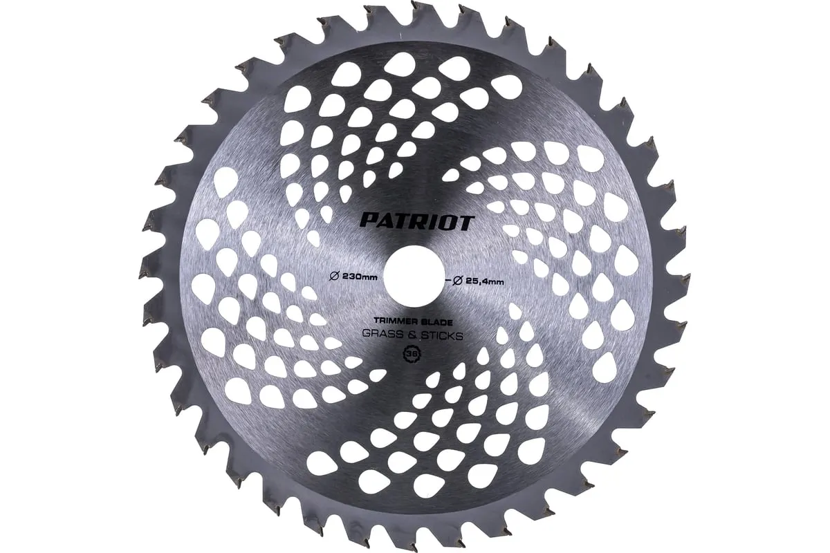 Нож для триммера TBS-40 Promo PATRIOT 809115226 является сменным элементом для триммеров средней и высокой мощности. Применяется для скашивания сучковатых кустарников и тонких стволов деревьев. Режущие зубья изготовлены из твердосплавного материала. Нож имеет большой ресурс работы, при соблюдении правил эксплуатации прослужит длительное время.