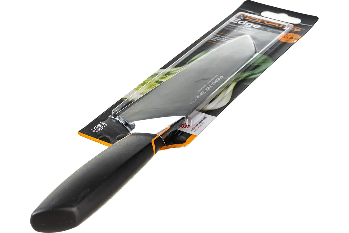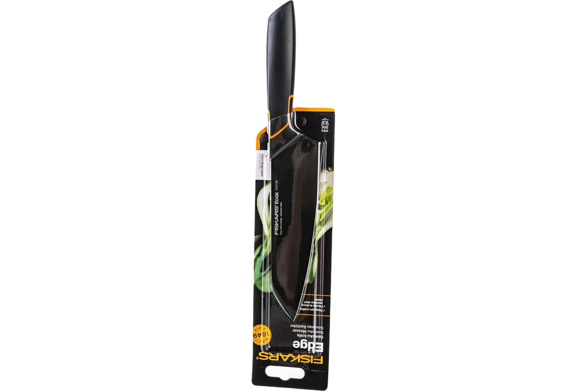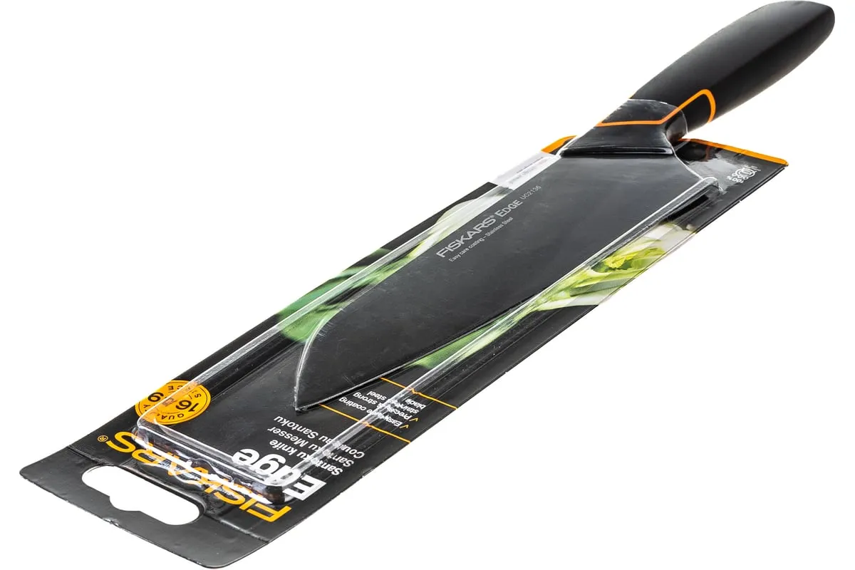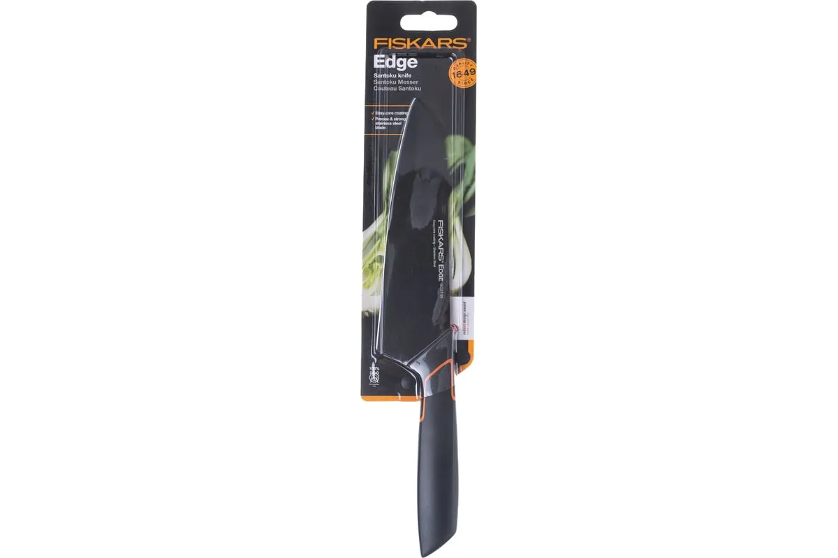 Нож Fiskars "Сантоку" Edge 1003097 подходит для мяса, рыбы и овощей. Выполнен из нержавеющей японской стали. Имеет твердость 53 по шкале Роквела.