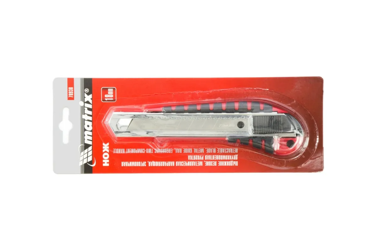 Нож Matrix 78938 с выдвижным лезвием шириной 18 мм, металлической направляющей и эргономичной двухкомпонентной рукояткой пригодится в мастерской, для бытового использования, проведения ремонтных работ, а также для рукоделия. Он с легкостью разрезает бумагу, картон и более плотные материалы, например, кожаные изделия.