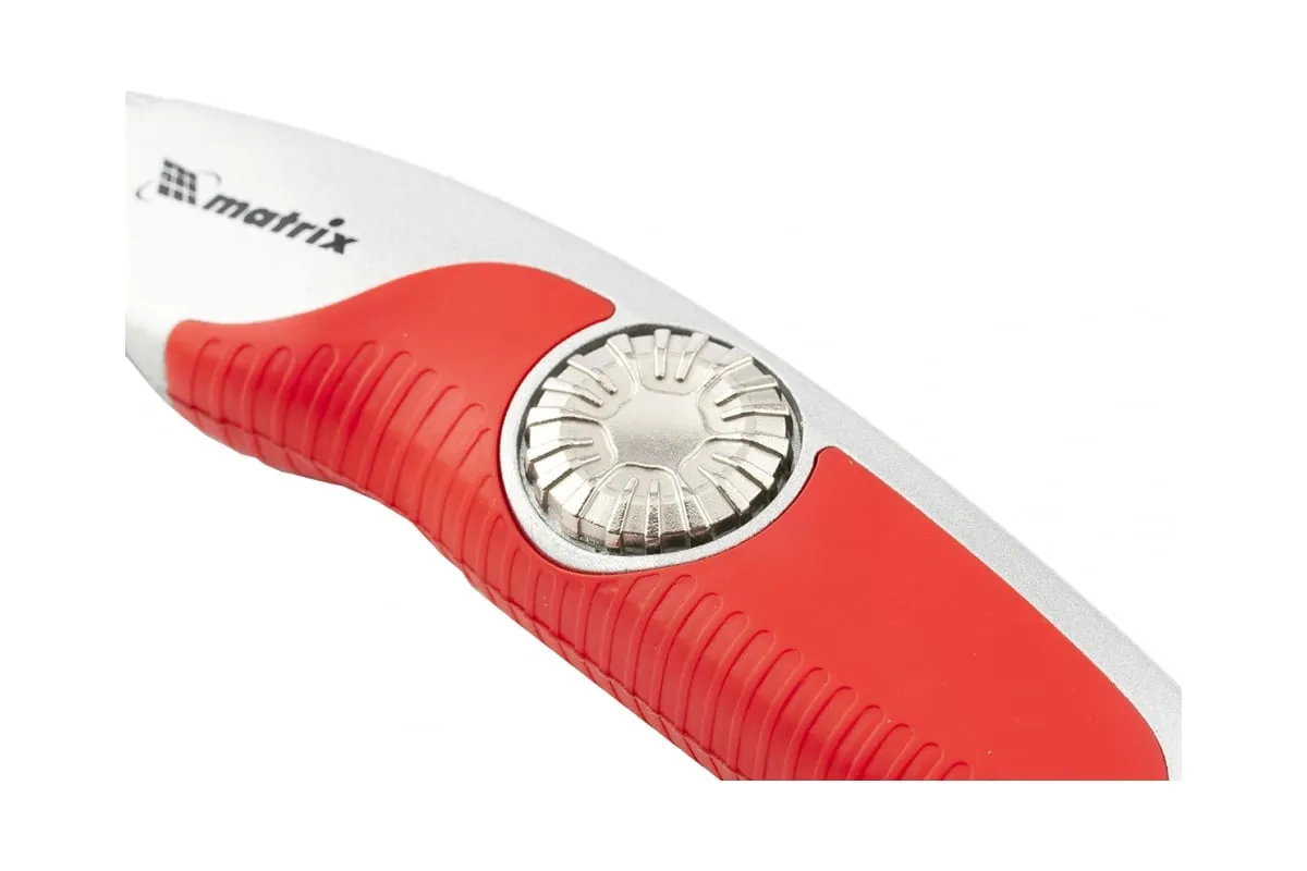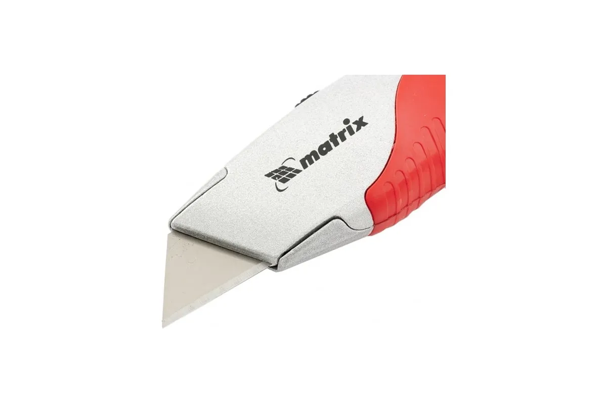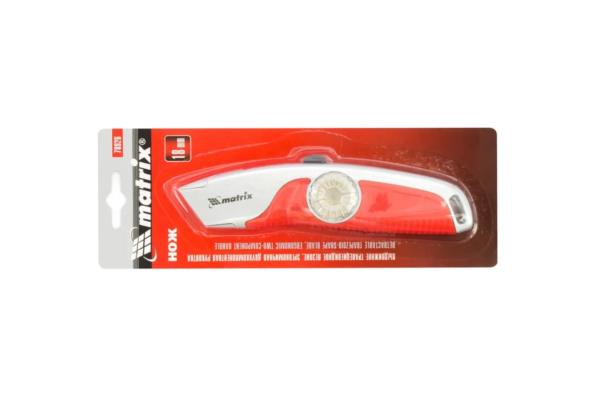 Нож Matrix 78926 с выдвижным трапециевидным лезвием и эргономичной двухкомпонентной рукояткой эффективно справляется с резкой бумаги, картона, кожи и других нетвердых материалов. Он станет незаменимым помощником на строительной площадке, на кухне, в офисе. Складная конструкция инструмента делает его универсальным, а также повышает удобство и безопасность эксплуатации.