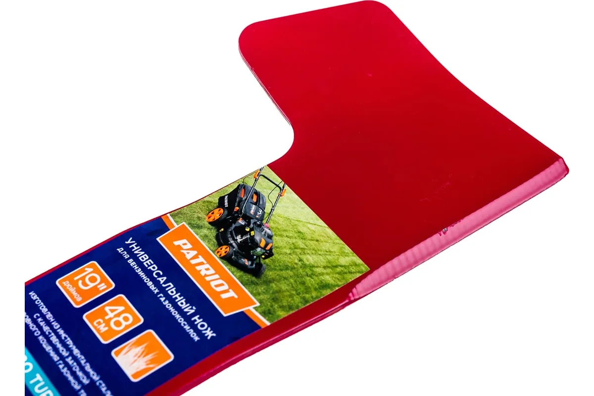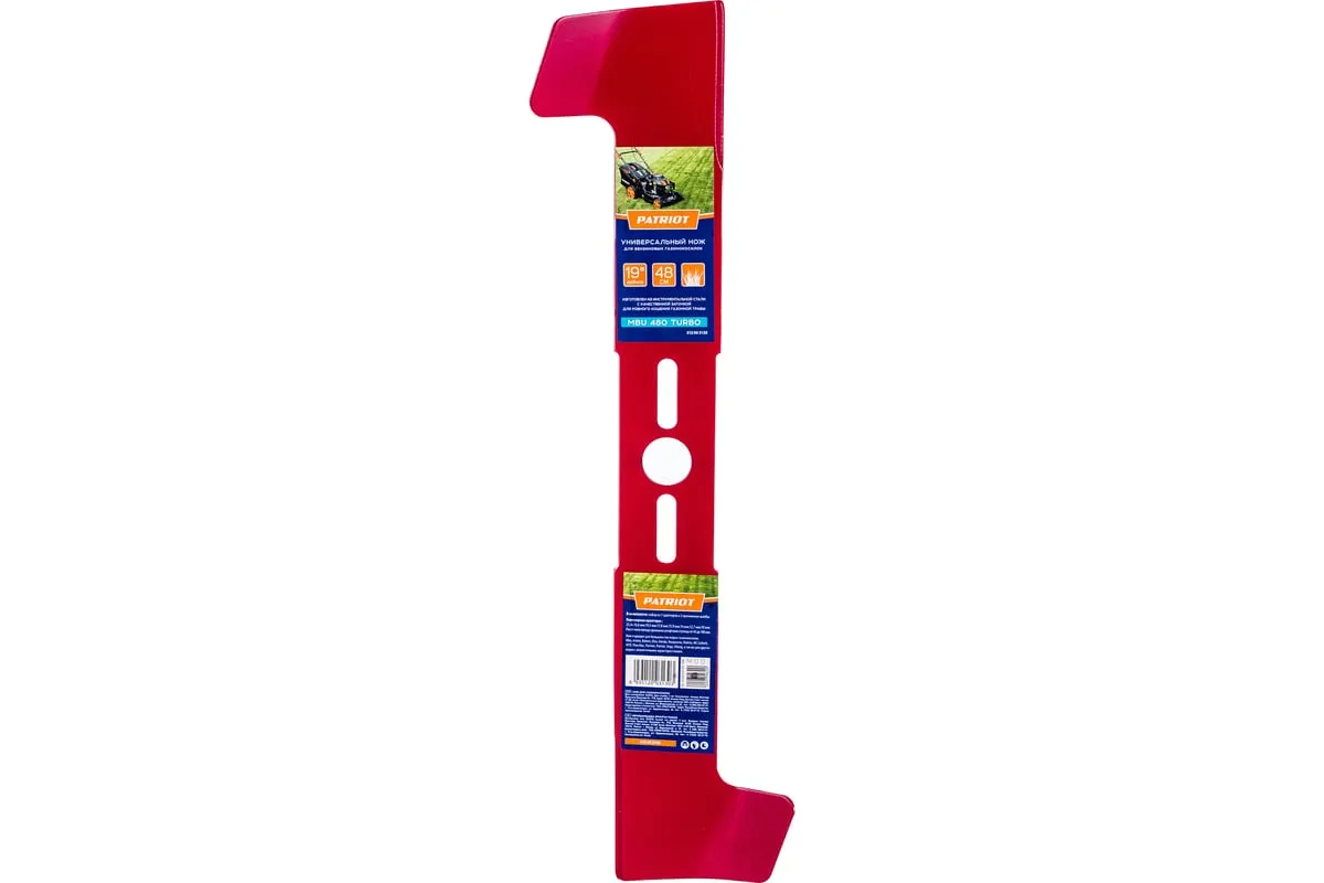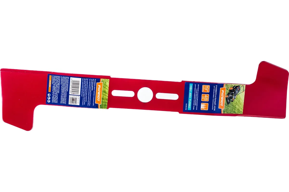 Нож MBU Turbo 480 универсальный для газонокосилок, 19" PATRIOT 512003130 подходит для установки на газонокосилки Alko, Ariens, Bolens, Efco, Honda, Husqvarna, Makita, MC Culloch, MTD, Oleo Mac, Partner, Patriot, Stiga, Viking, а также для других марок.