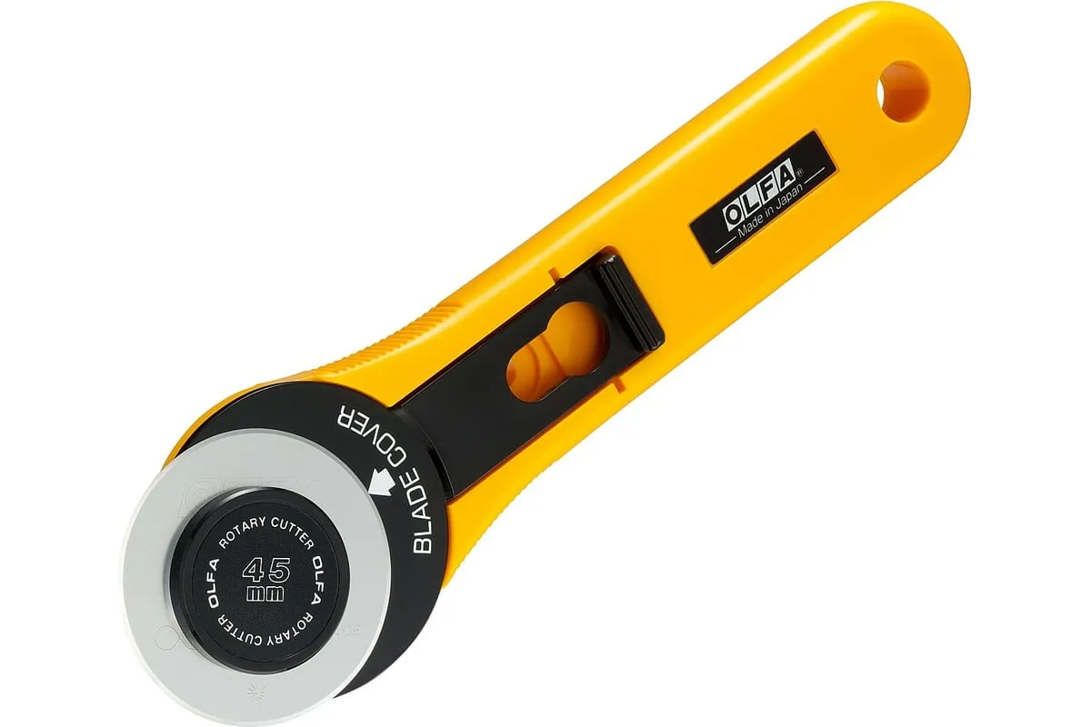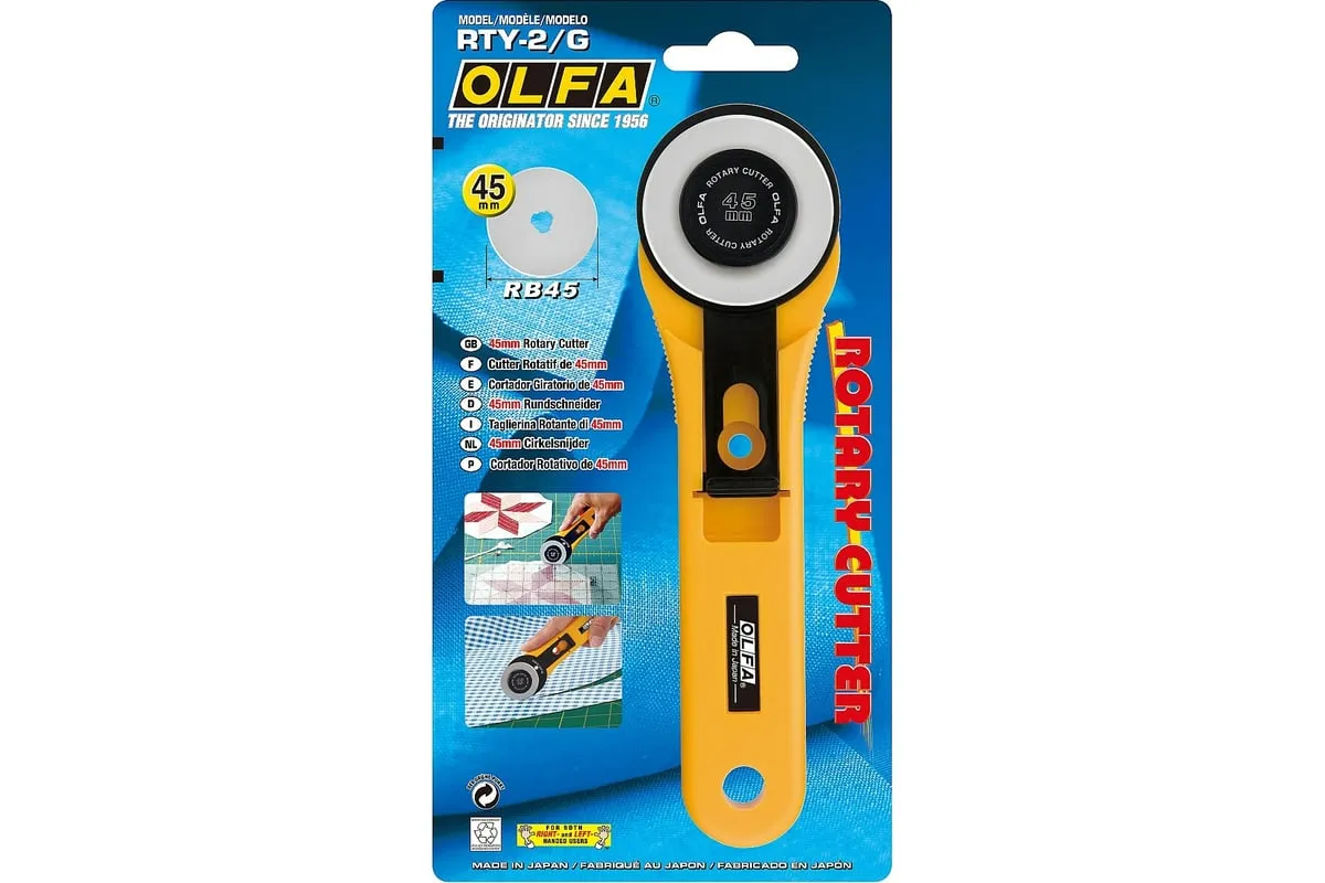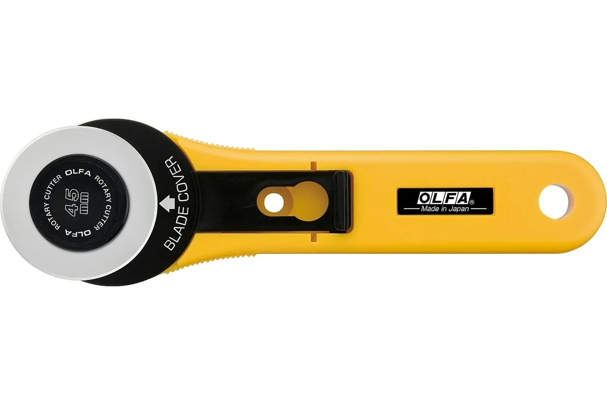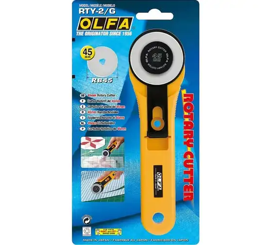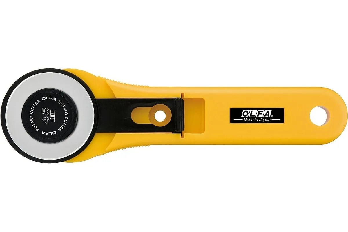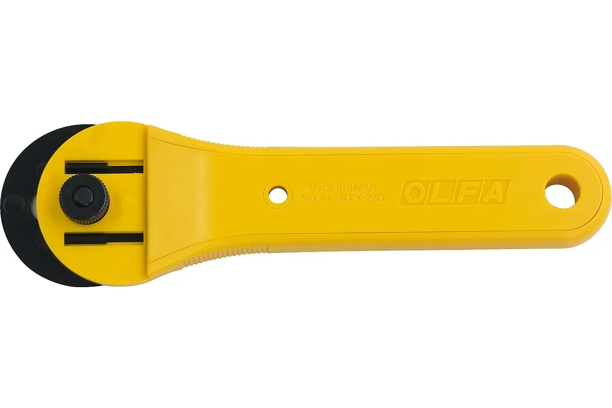 Круговой нож OLFA RTY-2/G с прямой рукояткой — это оригинальный резак в классическом дизайне OLFA. Продуманный дизайн и конструкция делают его идеальным инструментом для квилтеров, швей, дизайнеров и обычных мастеров. Нож с прямой рукояткой классической конструкции прост и эффективен. Прочная ручка имеет текстурированные канавки для контроля реза и предотвращения скольжения пальцев. Оборудован встроенной крышкой для лезвия, обеспечивающей дополнительную безопасность. Симметричный дизайн позволяет использовать его как правой, так и левой рукой. Вращающееся лезвие OLFA RB45 эффективно режет различные материалы, включая флис, войлок, шерсть, кожу, винил и другие. Изготовлено из легированной вольфрамом стали и справляется за один проход с восемью слоями хлопка. Используйте удобное отверстие в ручке, чтобы повесить инструмент на рабочем месте.