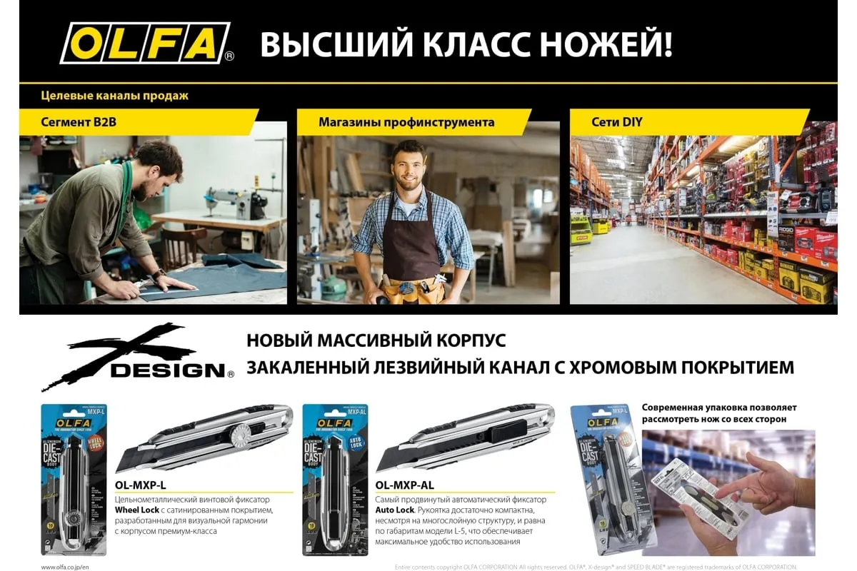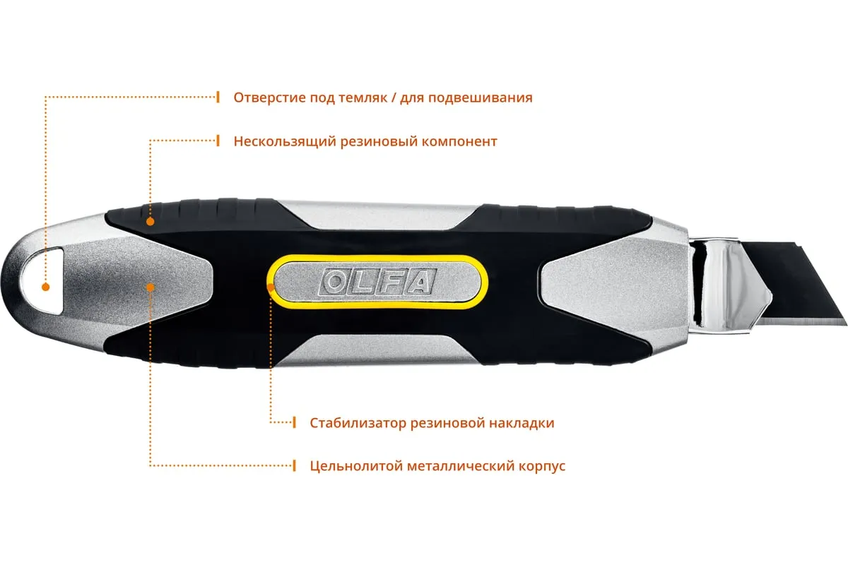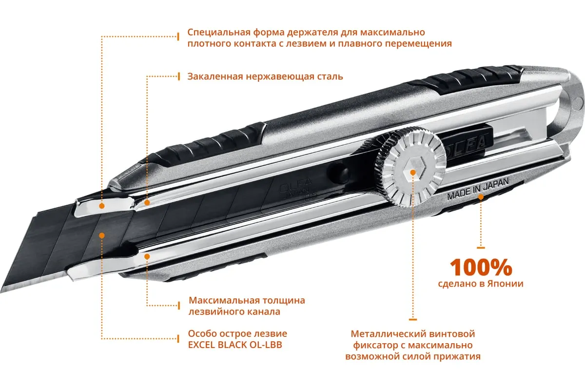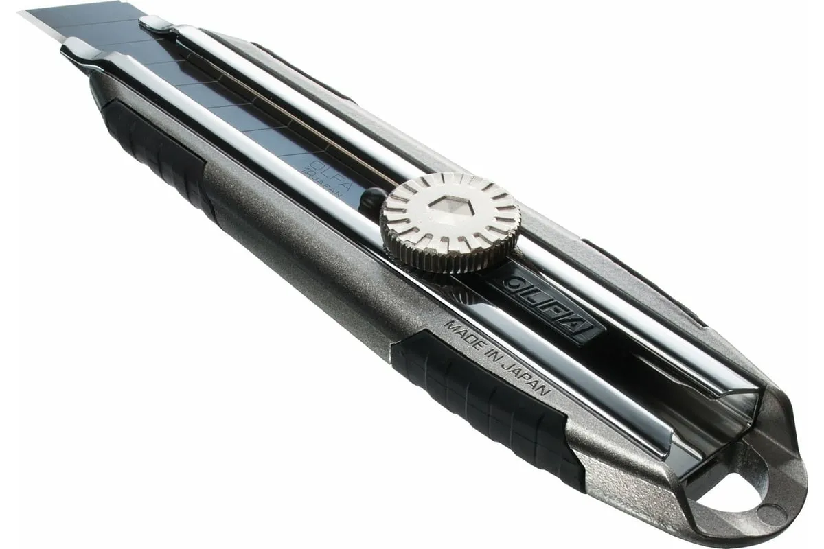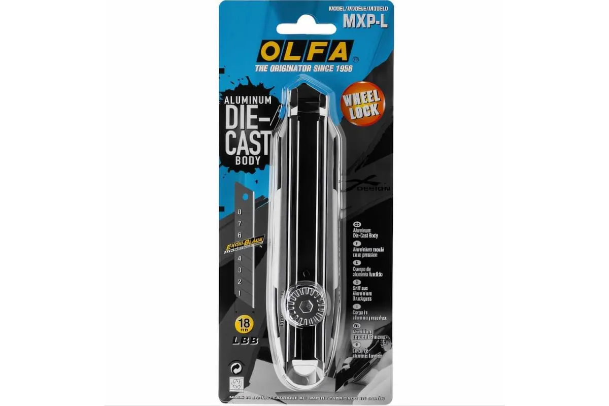 Нож из литого алюминия OLFA MXP-L для точного и уверенного реза. Корпус из нержавеющей стали надежно фиксирует лезвие, обеспечивая исключительную долговечность даже при непрерывном использовании. Ультра-острое черное сегментированное лезвие LBB шириной 18 мм на 25% острее стандартных лезвий OLFA, что делает этот универсальный нож выбором профессионалов. Цельнометаллический винтовой фиксатор Wheel Lock с сатинированным покрытием надежен и визуально гармоничен с корпусом. Рукоятка с противоскользящей резиновой накладкой достаточно компактна и максимально удобна в использовании.