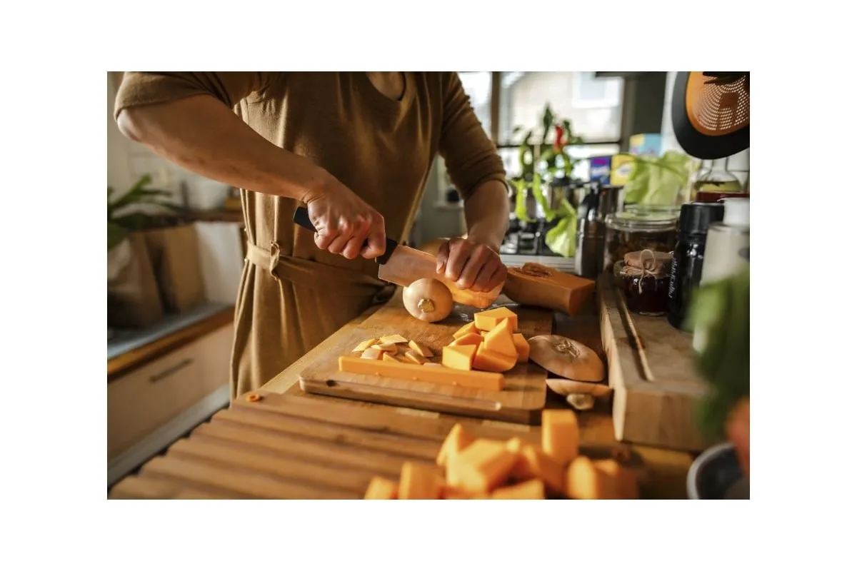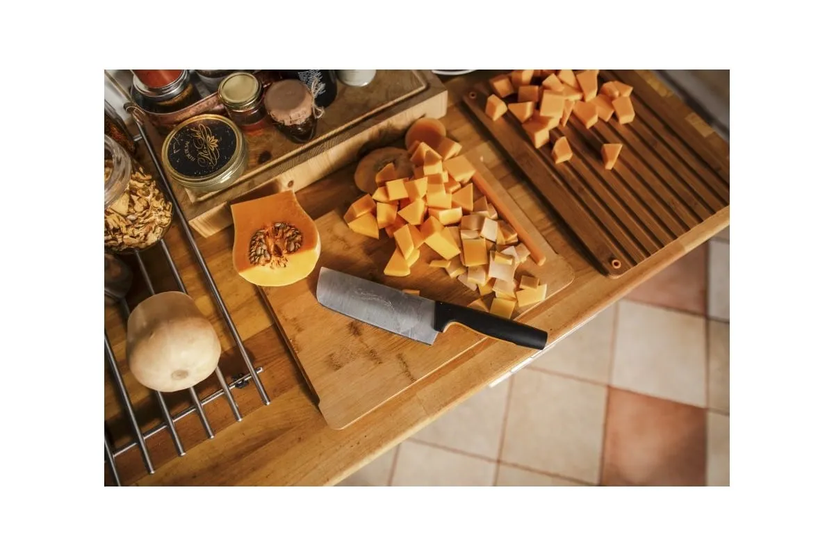 Универсальный нож в азиатском стиле с широким лезвием, который удобен в использовании и прост в обслуживании.