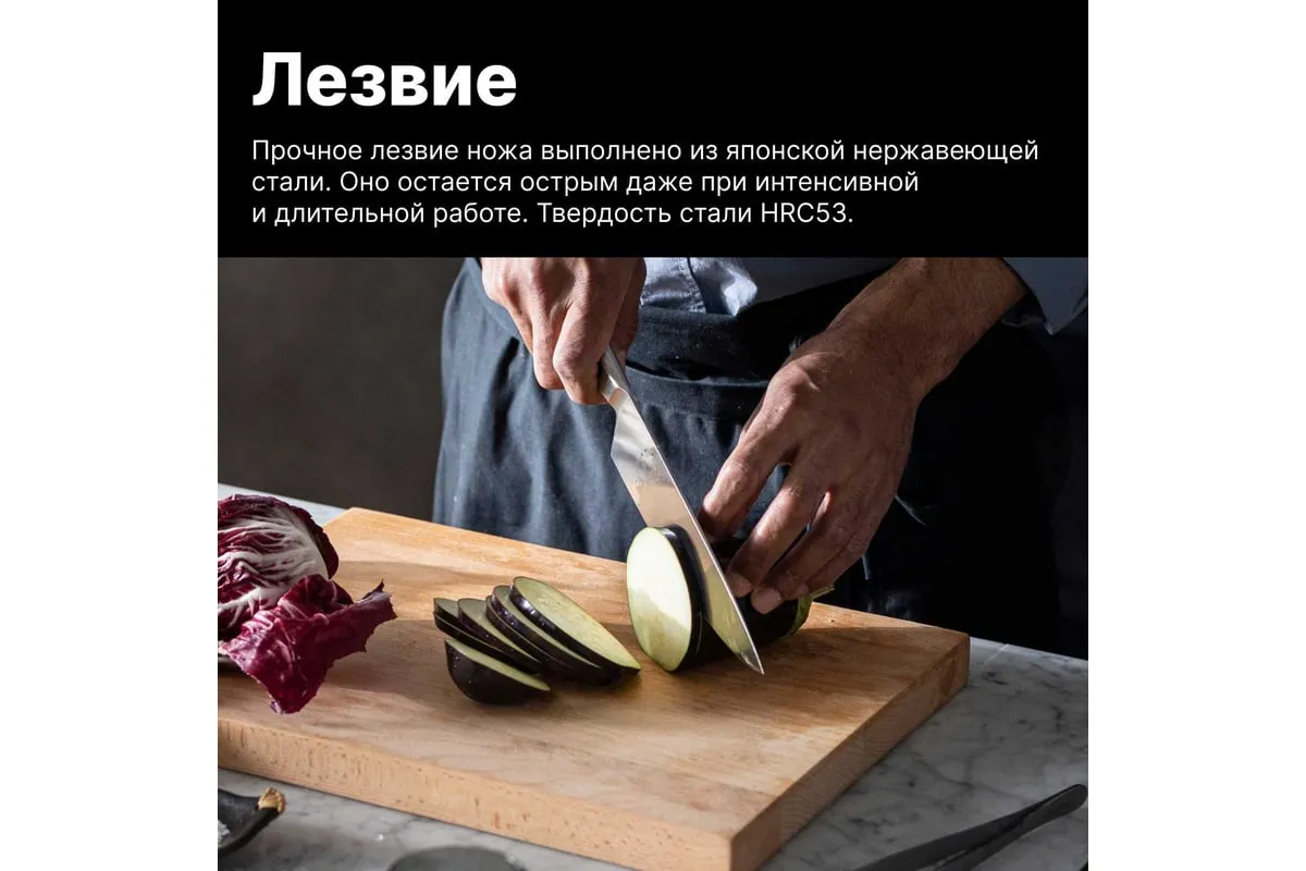Японская твердосплавная сталь обеспечивает превосходную долговечность, а бесшовная литая конструкция придает красивый, неподвластный времени вид. Оптимальный баланс делает нарезку удобной и естественной. Рекомендуется ручная чистка. Разработан в Финляндии.