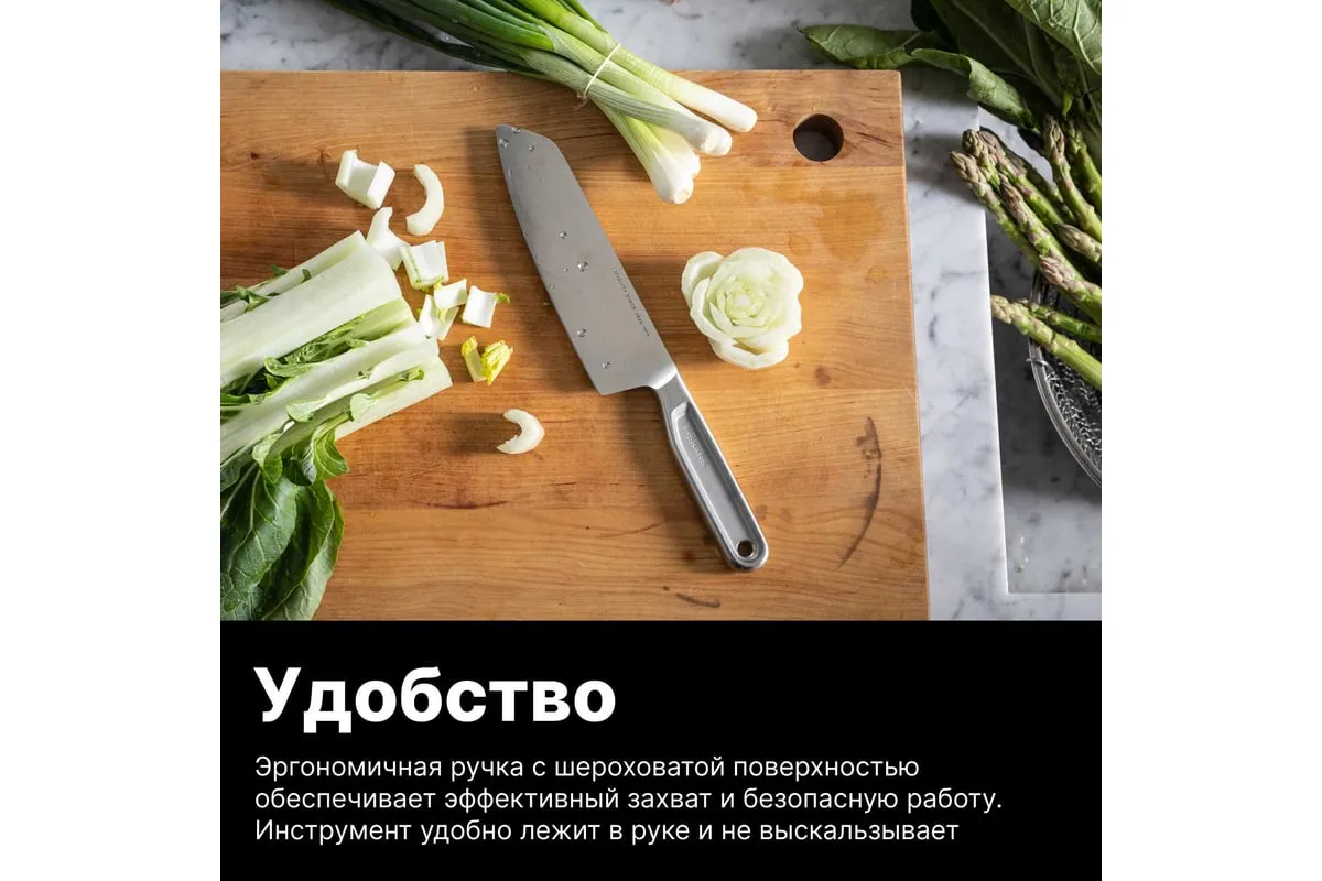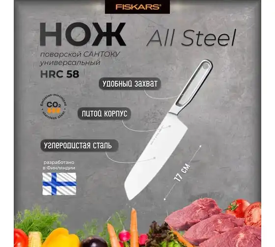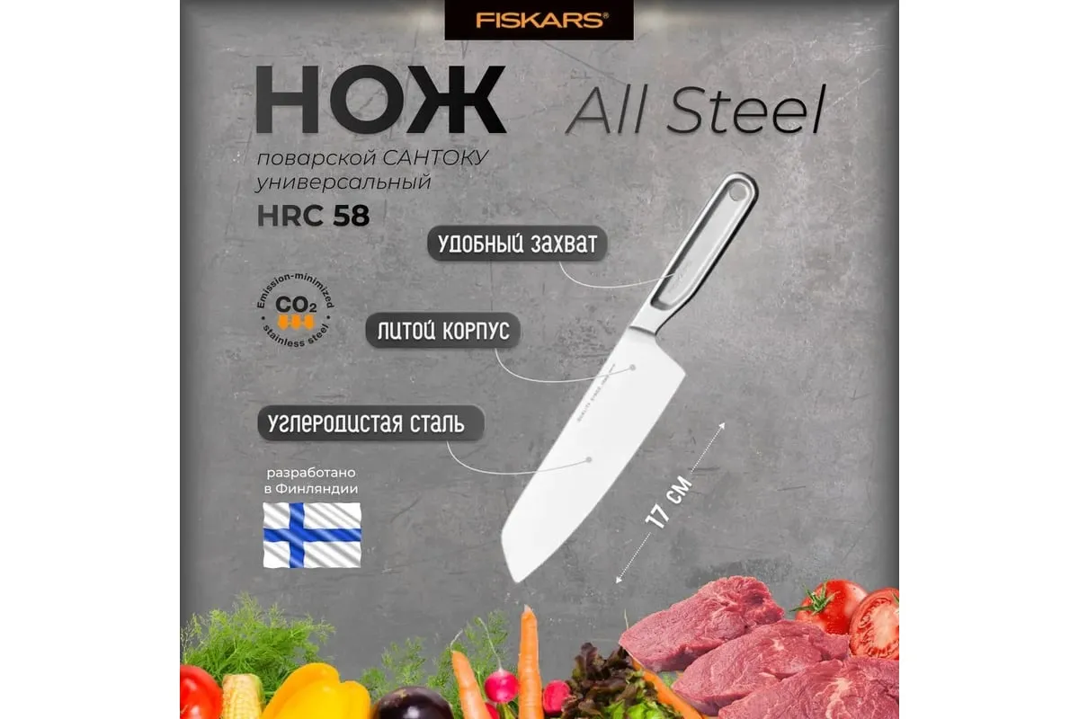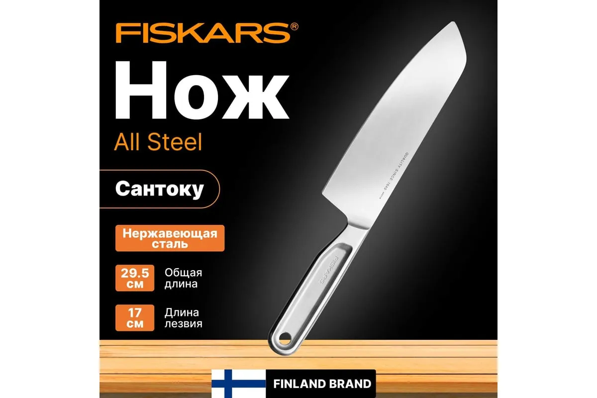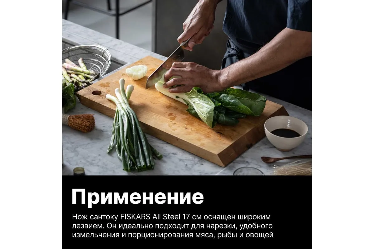 Нож Fiskars из нержавеющей стали Santoku - это универсальный нож в азиатском стиле.