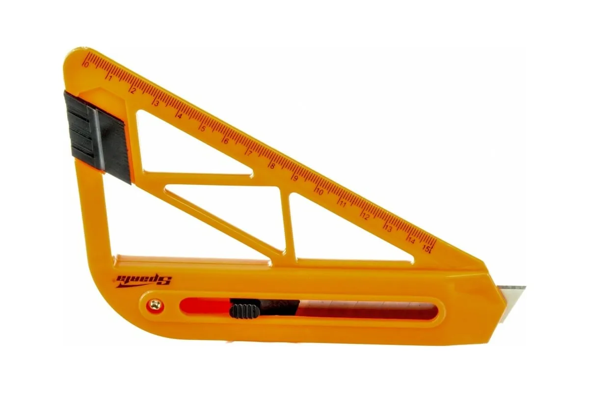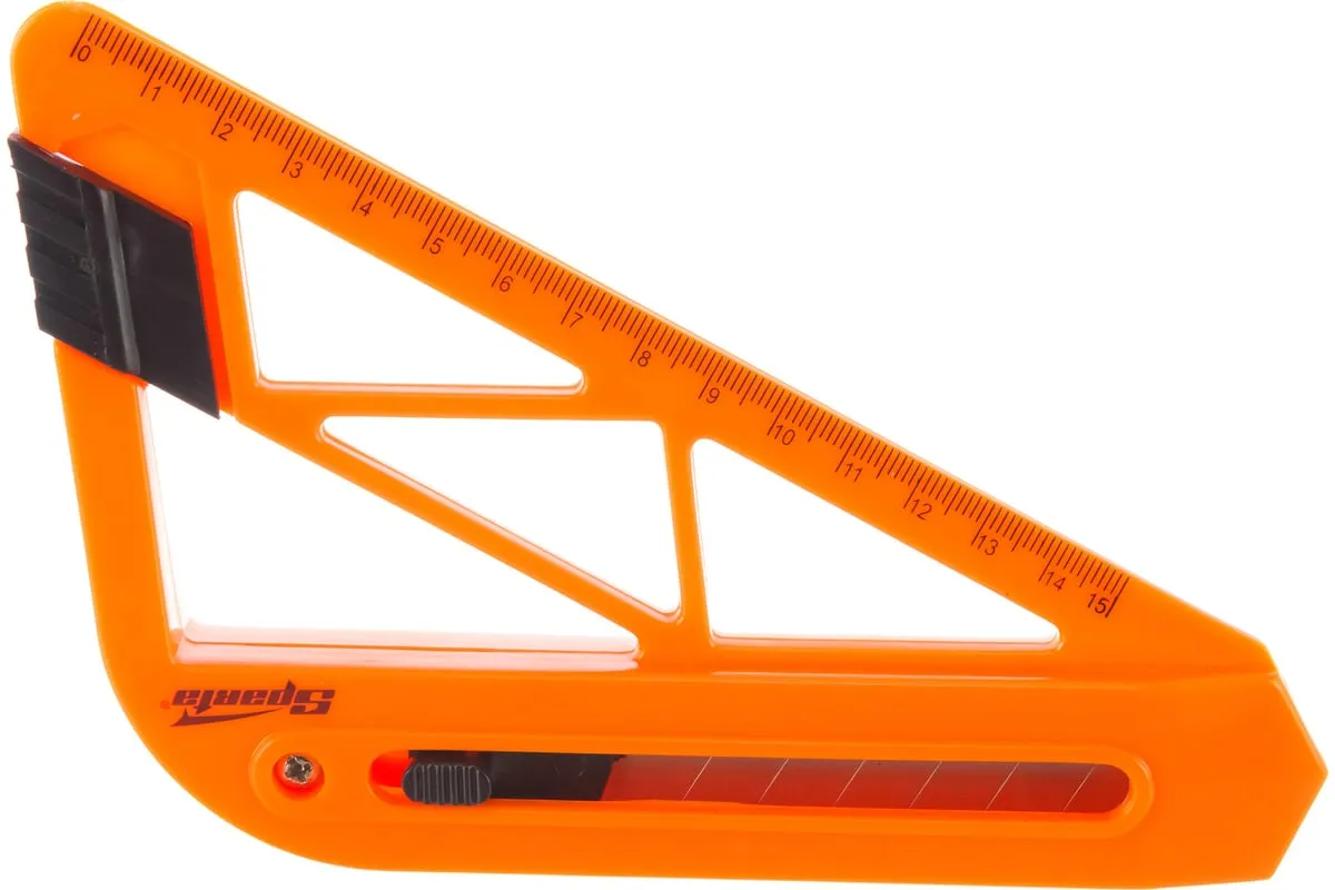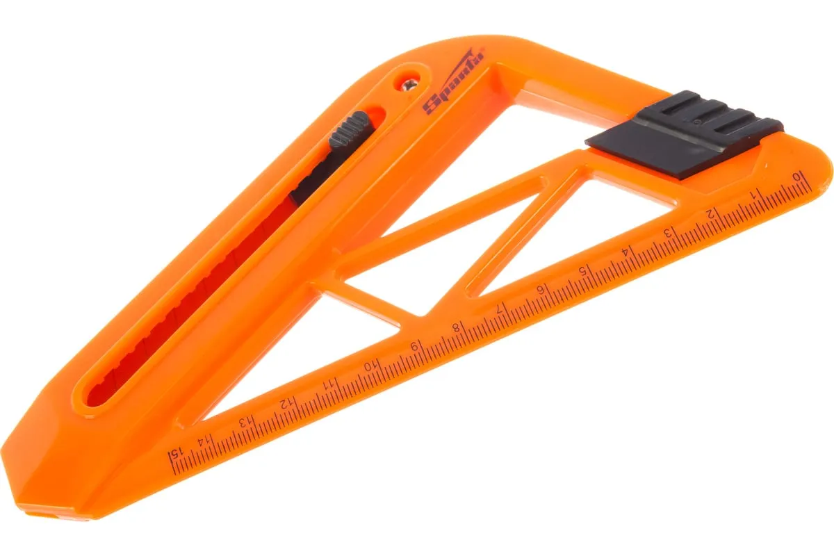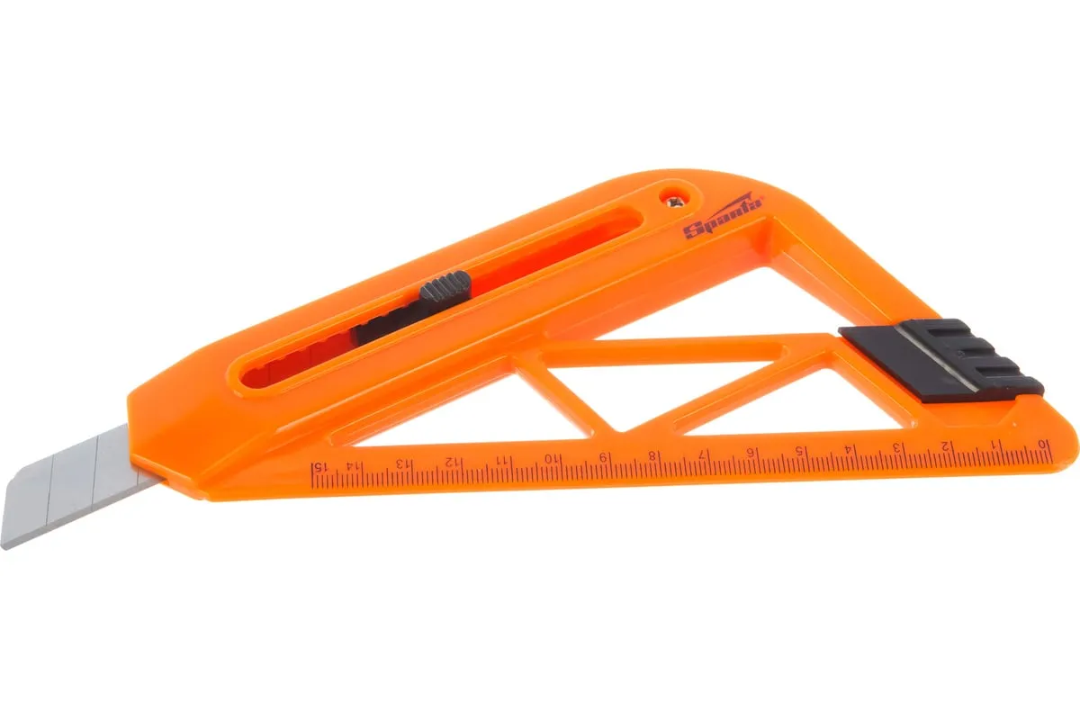 Нож с выдвижным лезвием и линейкой 18 мм SPARTA 789195 имеет пластмассовый корпус специальной формы с нанесенной миллиметровой шкалой, обеспечивающей разрез на нужную длину. Такой нож используется в основном для резки обоев. Фиксация лезвия производится автоматически.