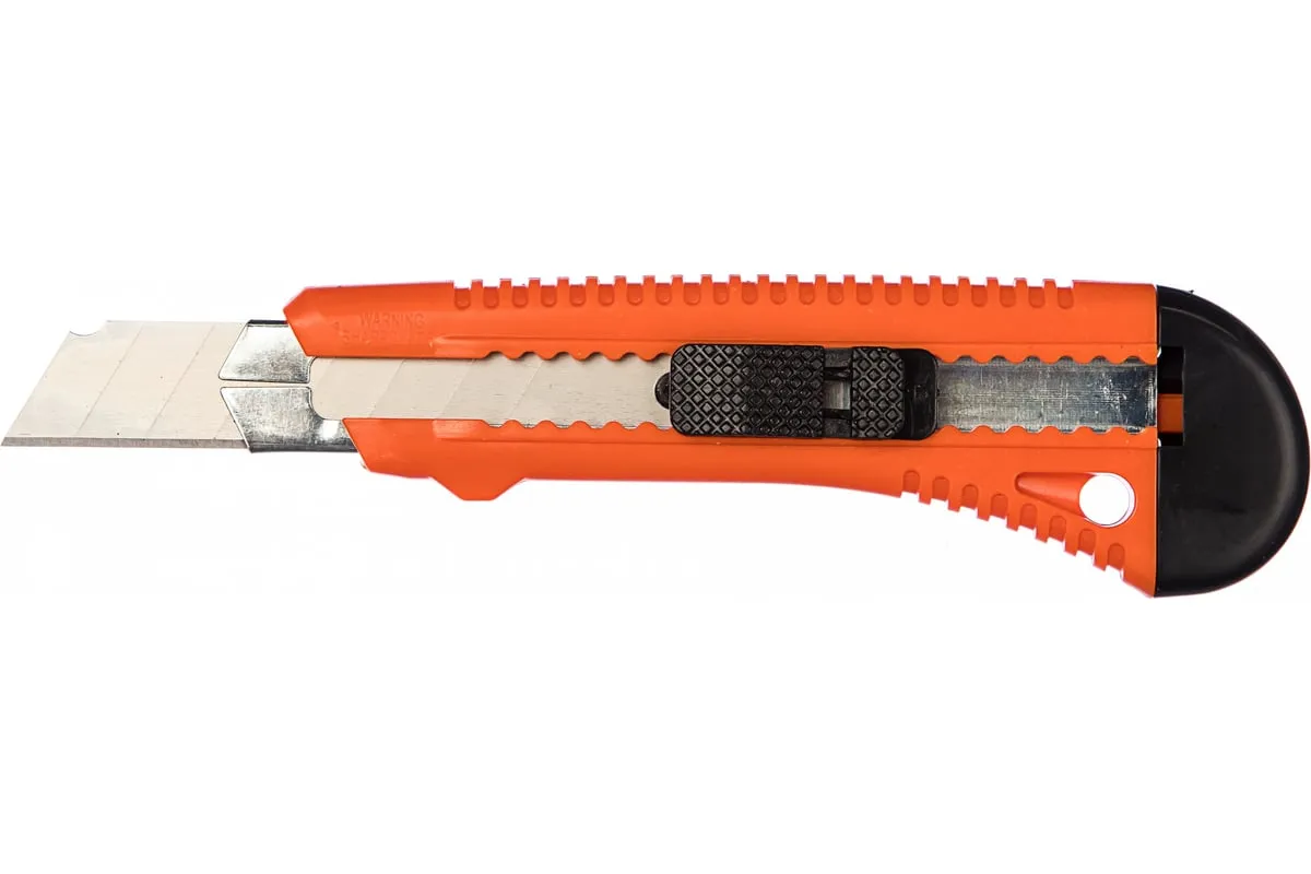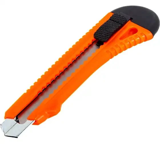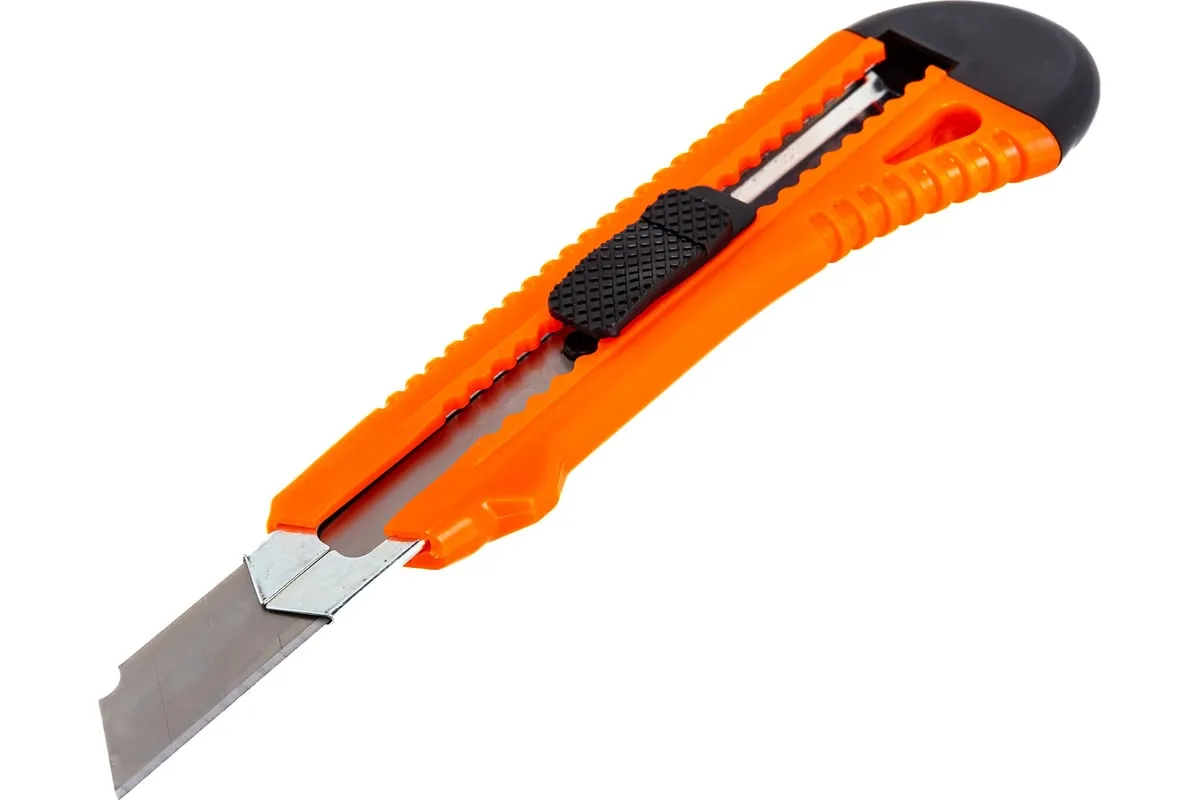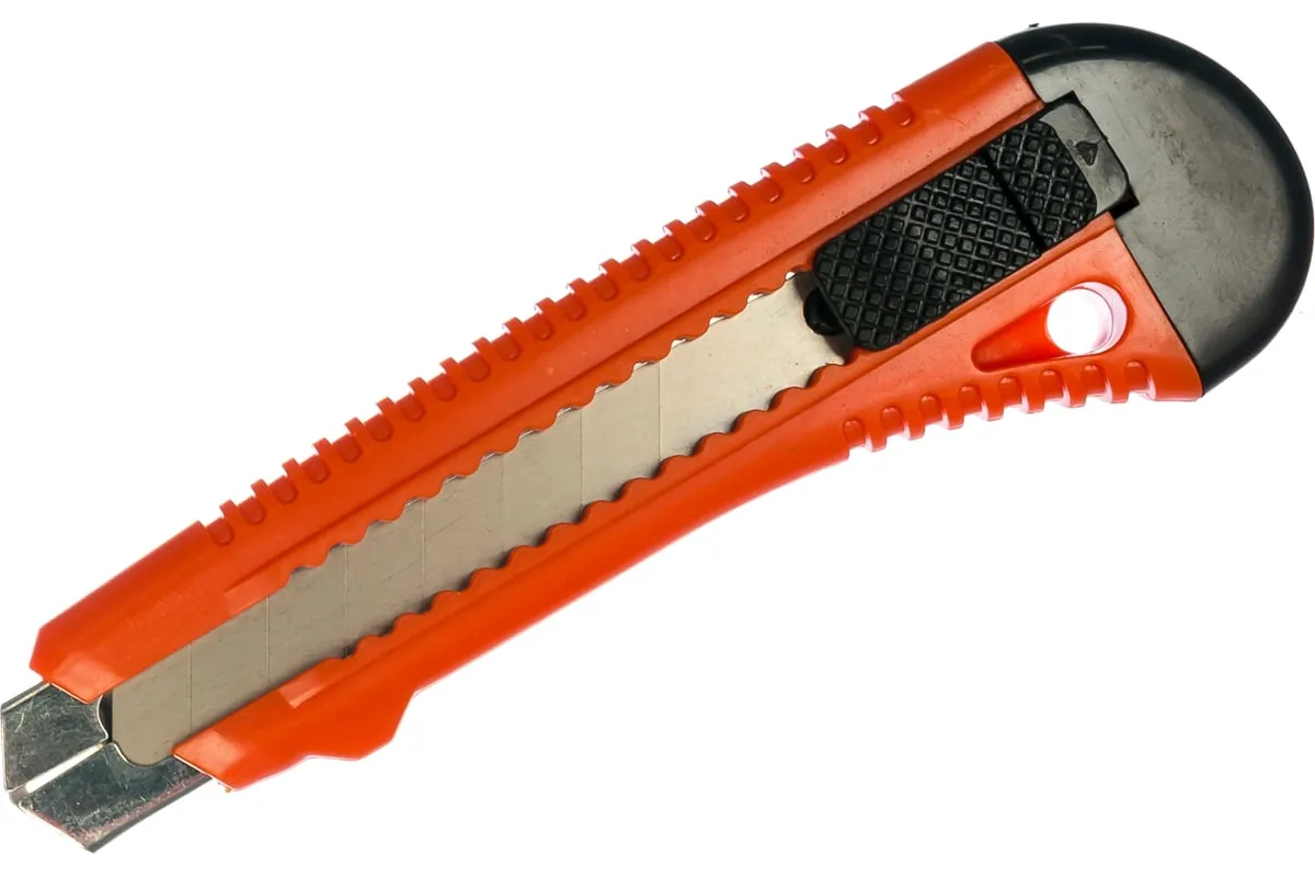 Нож с выдвижным лезвием шириной 18 мм и металлической направляющей рассчитан на выполнение мелких ремонтных и монтажных работ, а также для рукоделия и бытового использования. Он режет тонкие материалы, например, бумагу или картон. Нож не нужно затачивать.