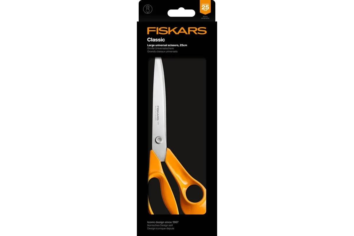 Ножницы универсальные FISKARS Classic 25 см (1075038) – многофункциональные ножницы для бытовых и творческих задач. Усиленные лезвия справляются с бумагой, картоном, тканями и другими материалами. Удобные асимметричные ручки для правшей и левшей. Надежная фиксация лезвий предотвращает люфт при работе. Универсальное решение для дома, офиса и мастерской.