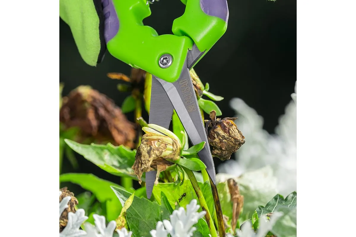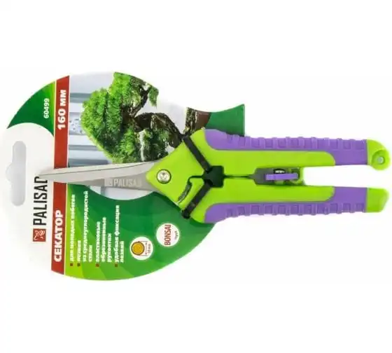 Цветочный секатор для бонсай и топиария Palisad 60499 длиной 160 мм, с двухкомпонентными рукоятками, срезает молодые побеги и стебли толщиной до 10 мм. Движущиеся в параллельных плоскостях лезвия обеспечивают ровный аккуратный срез. Регулировочный винт позволяет контролировать плотность смыкания лезвий. Инструмент применяется для ухода за цветами, оформления крон бонсай и топиарных скульптур. Подходит также для использования в хозяйственных целях — разрезания картона, бумаги, ткани, подвязочного материала. Секатор будет полезен на дачном участке.