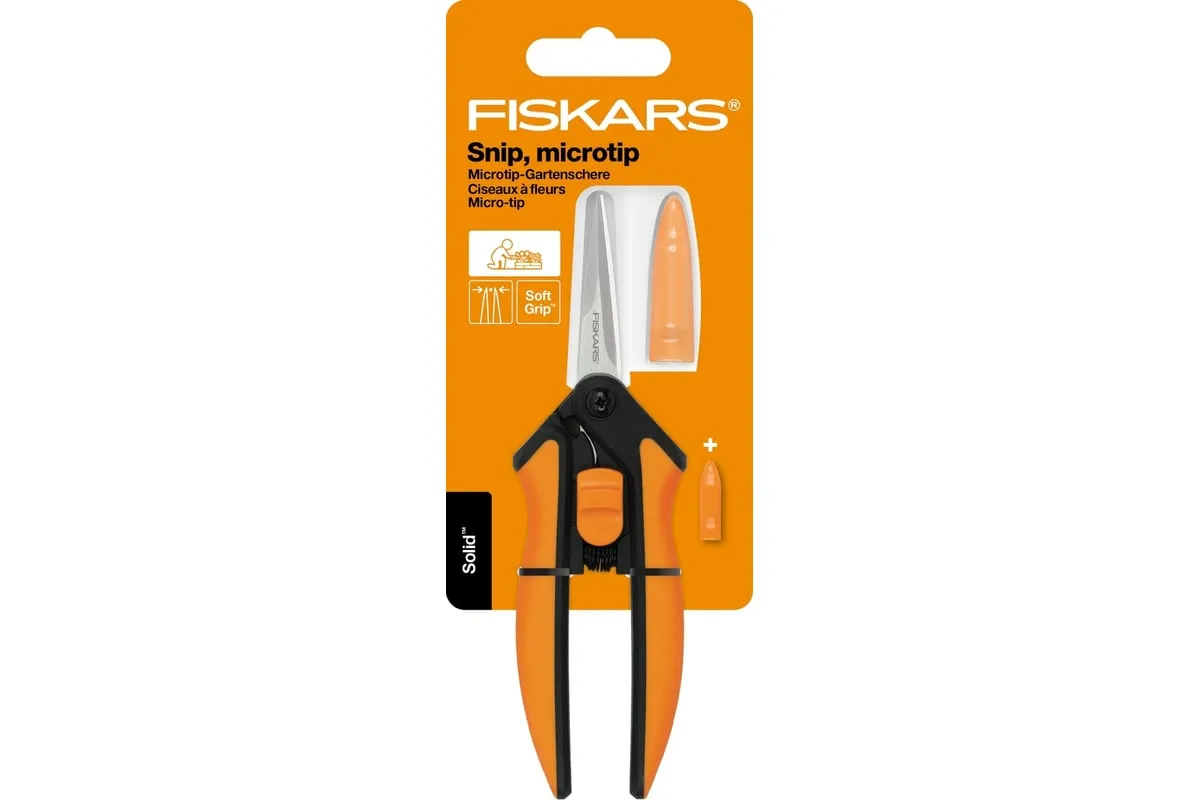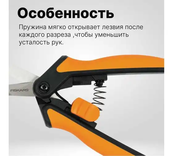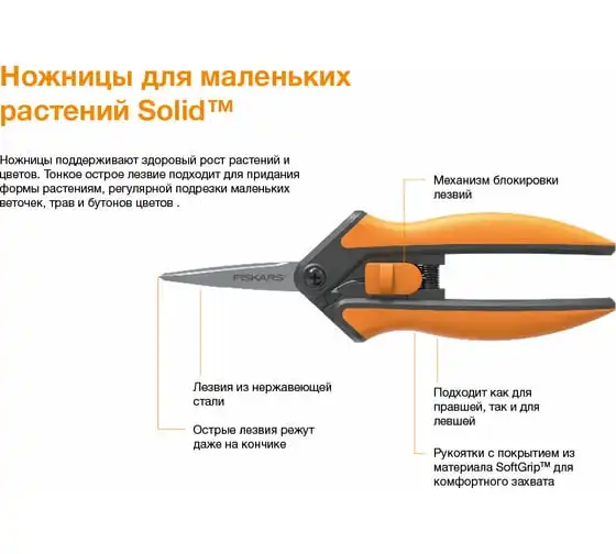 Ножницы для маленьких растений Fiskars SP13 1051600 используются для ухода за садовыми и комнатными растениями. Острые лезвия, из нержавеющей стали, способны срезать стебли толщиной до 5 мм даже кончиками. Эргономичные рукоятки комфортно лежат в руке, а покрытие SoftGripTM предотвращает выскальзывание инструмента из рук. Для безопасной транспортировки и хранения предусмотрен фиксатор.