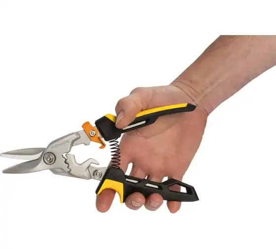 Ножницы для металла Fiskars прямые PowerGear 1027207 подойдут для резки обычной и нержавеющей стали. Наличие храповика обеспечивает увеличенную режущую способность. Конструкция исключает соскальзывание пальцев и делает работу безопасной.