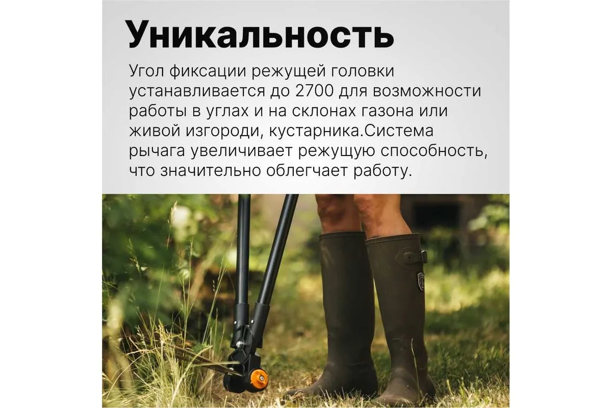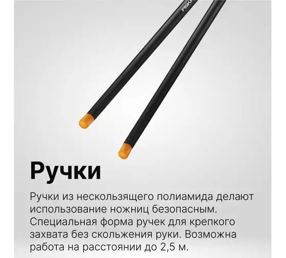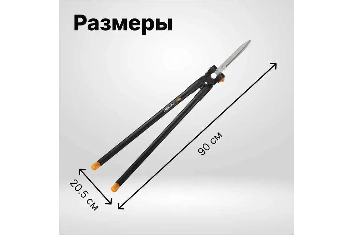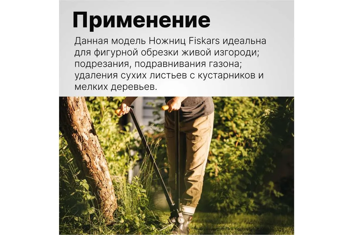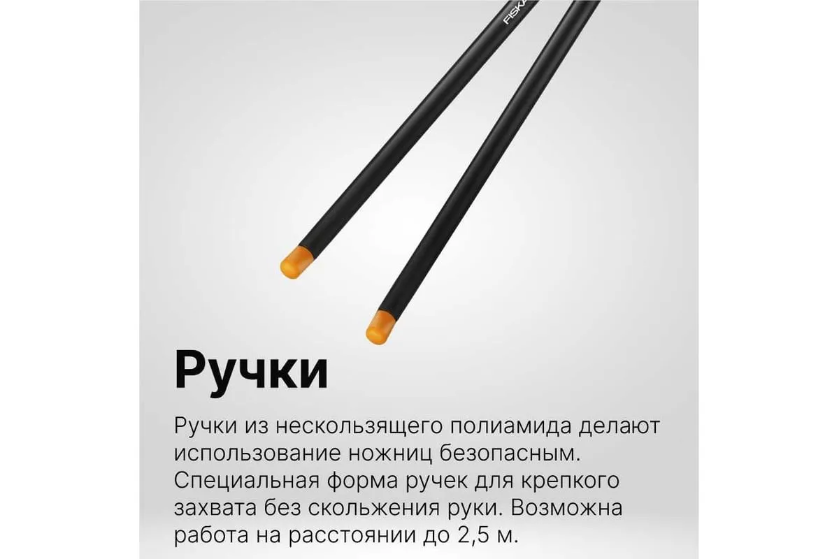 Ножницы для травы и живой изгороди Fiskars GS53 1001565 обладают длинными рукоятками. Это позволяет легко резать даже толстые ветки или большое количество листвы разом.