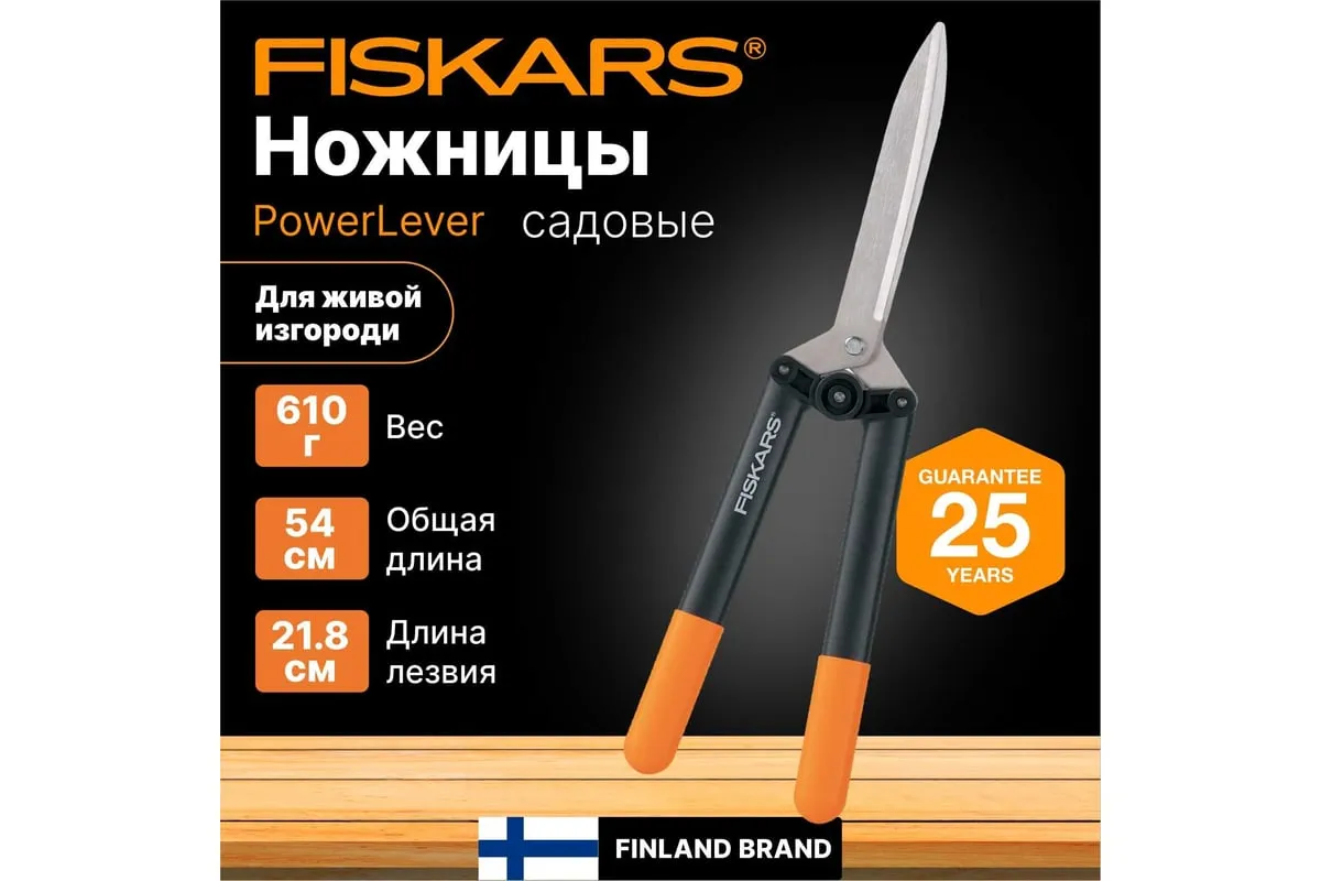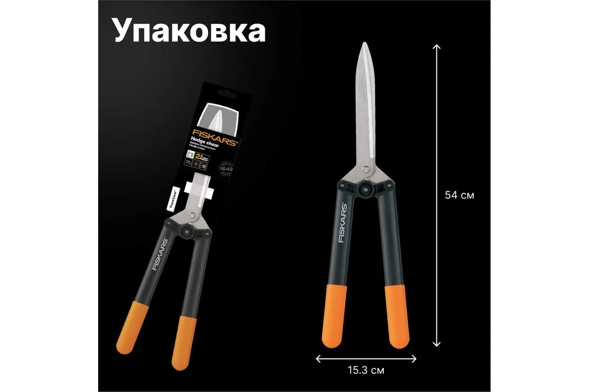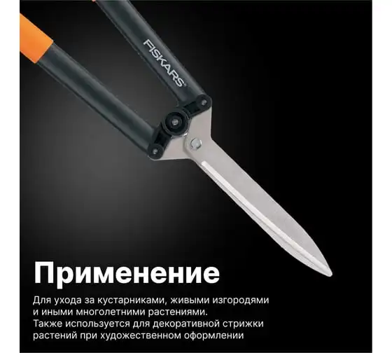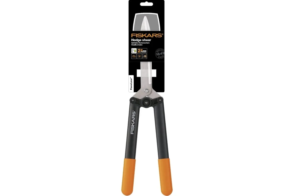 Ножницы для живой изгороди Fiskars HS52 1001564 (114750) предназначены для подстригания травы, а также подравнивания кустов (не повреждают листья и долго остаются острыми). Поможет справиться с задачей легко благодаря удобным ручкам, длина которых 160 мм. У данной модели есть уникальная система рычажного привода - режущая сила увеличивается в 2.5 раза.