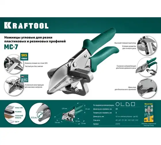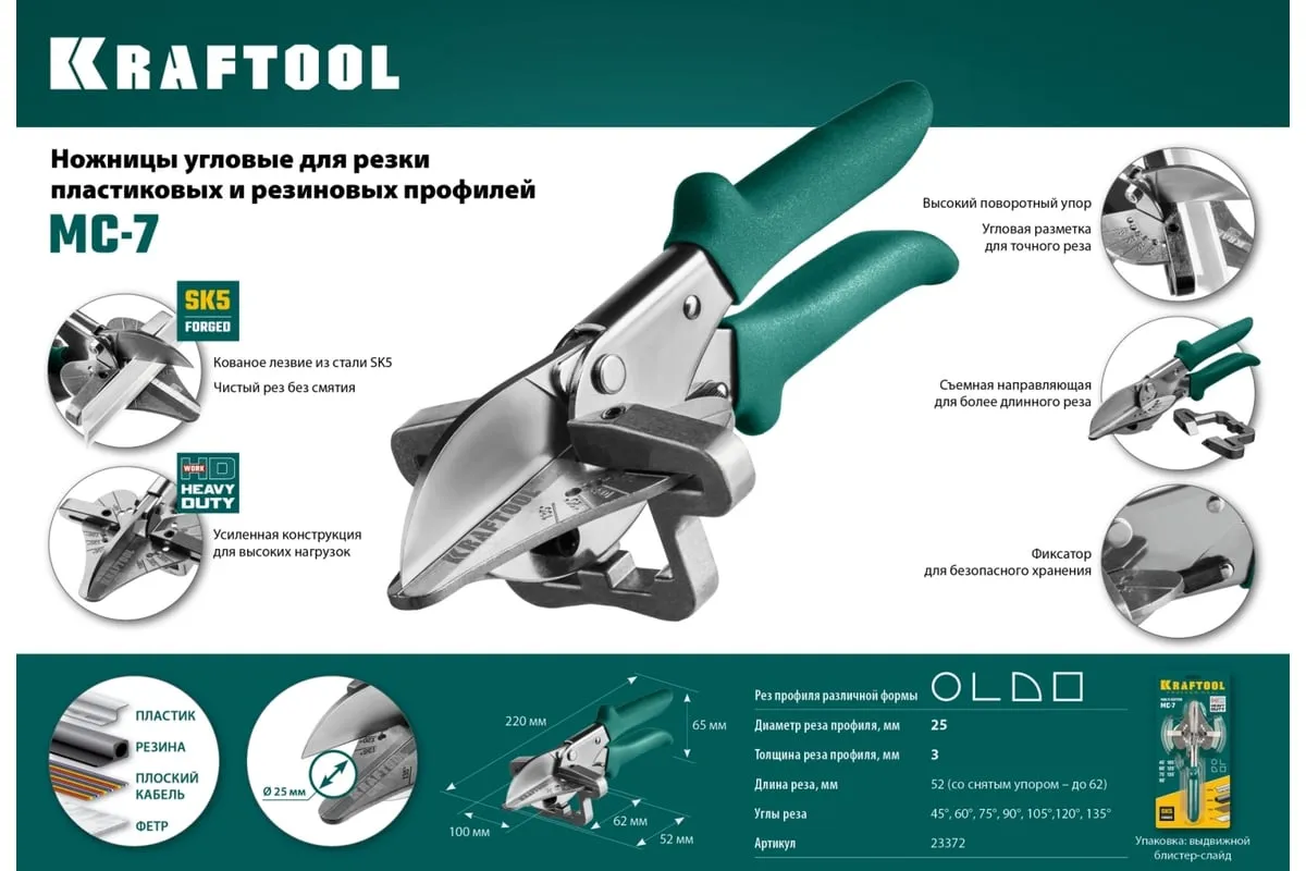 Ножницы KRAFTOOL MC-7 угловые, для пластмассовых и резиновых профилей 23372, плоского кабеля, фетра. Кованое лезвие из стали SK5. Чистый рез без смятия. Усиленная конструкция для высоких нагрузок.
