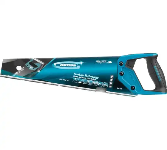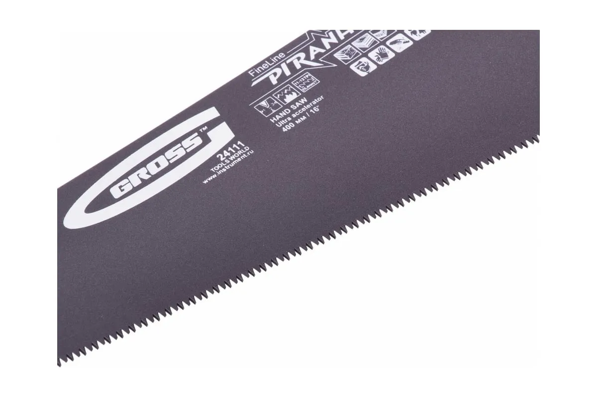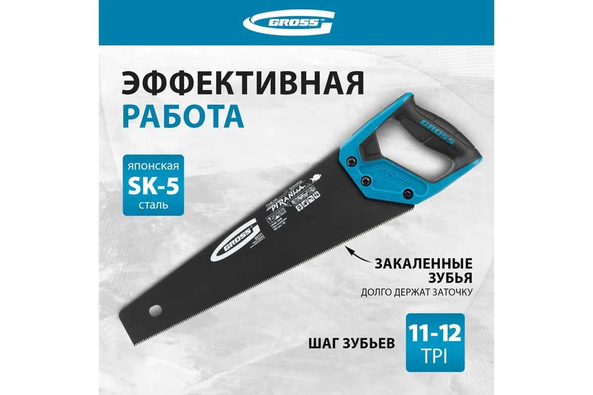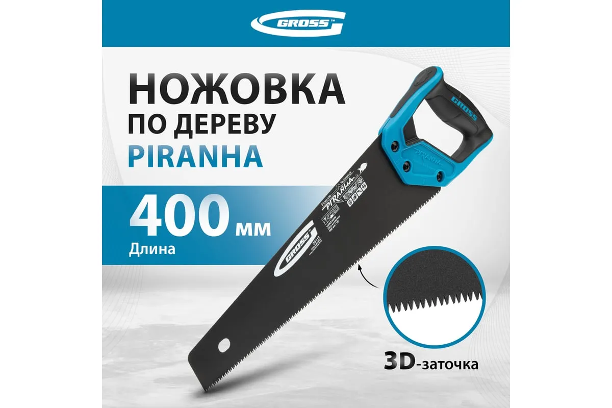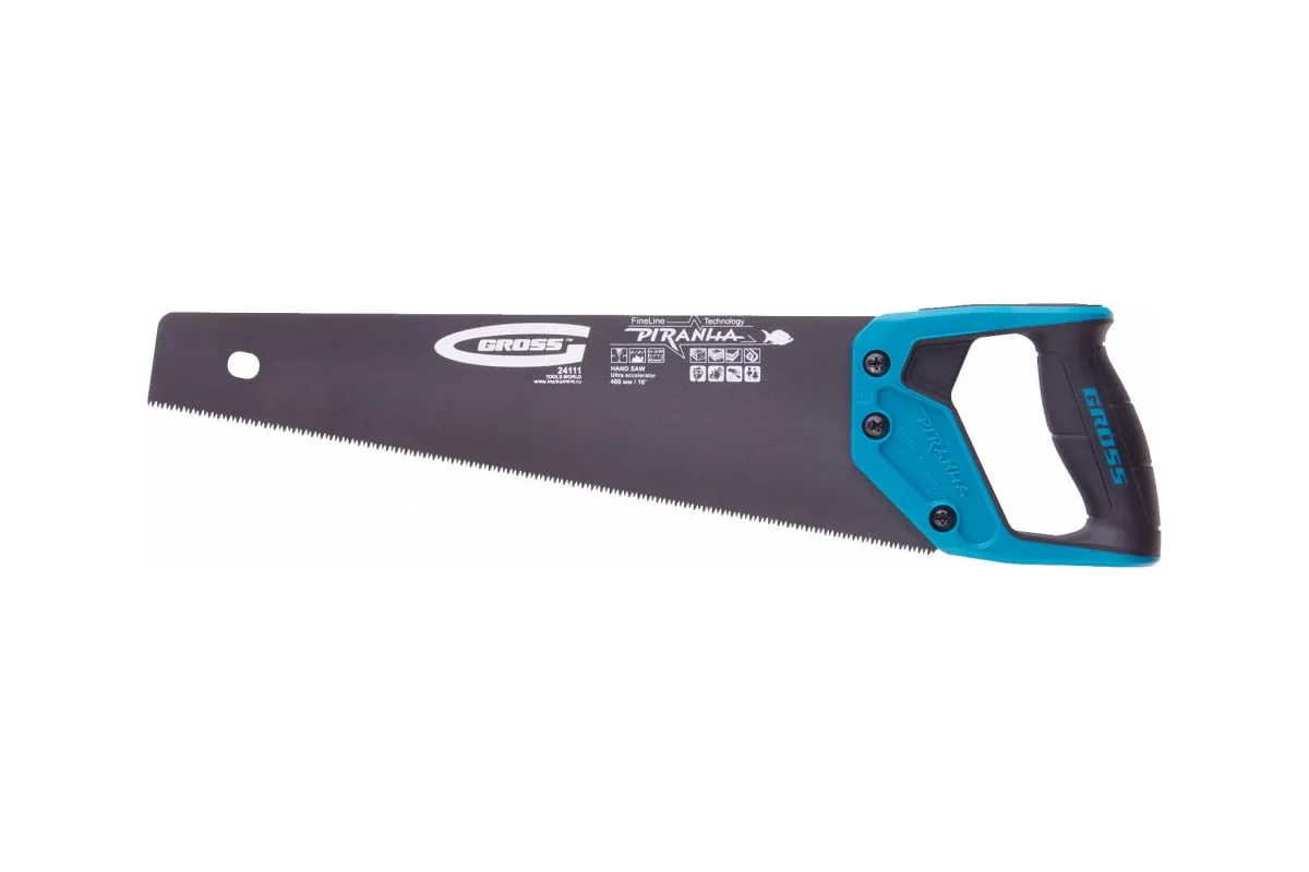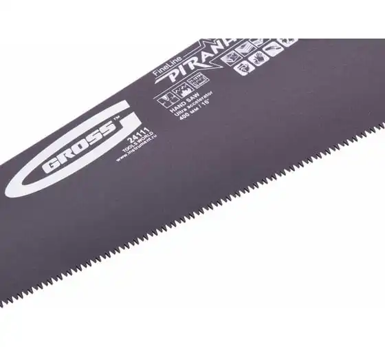 Ножовка по дереву 400 мм GROSS PIRANHA 24111служит для продольного и поперечного распила заготовок из древесины. Двухкомпонентная рукоятка обеспечивает удобный хват и максимальный контроль инструмента во время работы. Для удобного хранения в полотне ножовки предусмотрено специальное отверстие для подвеса.